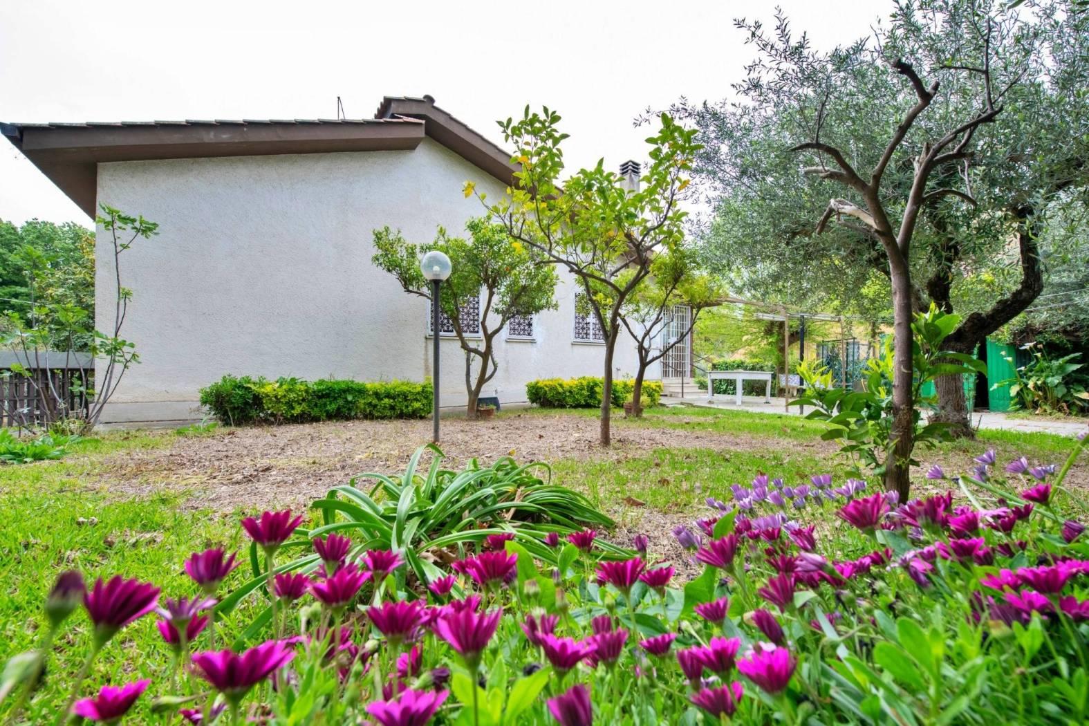 La veranda con vetrata rimovibile è l'ideale per godere della vista sui monti e sul mare, mentre il giardino di 900 mq offre infinite possibilità, inclusa l'installazione di una piscina e una zona barbecue. Con la possibilità di ampliare la casa di ulteriori 70 mq e di sfruttare la soffitta come secondo piano, questa proprietà è perfetta per chi cerca spazio e comfort.