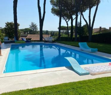 A impreziosire la proprietà, oltre la corte privata di circa un ettaro, vi è una piscina di circa 70 mq, con copertura mobile automatica, una tettoia fornita di barbecue in muratura e locali tecnici sottostanti. Vi sono anche un campo di bocce ed una serra per le piante.