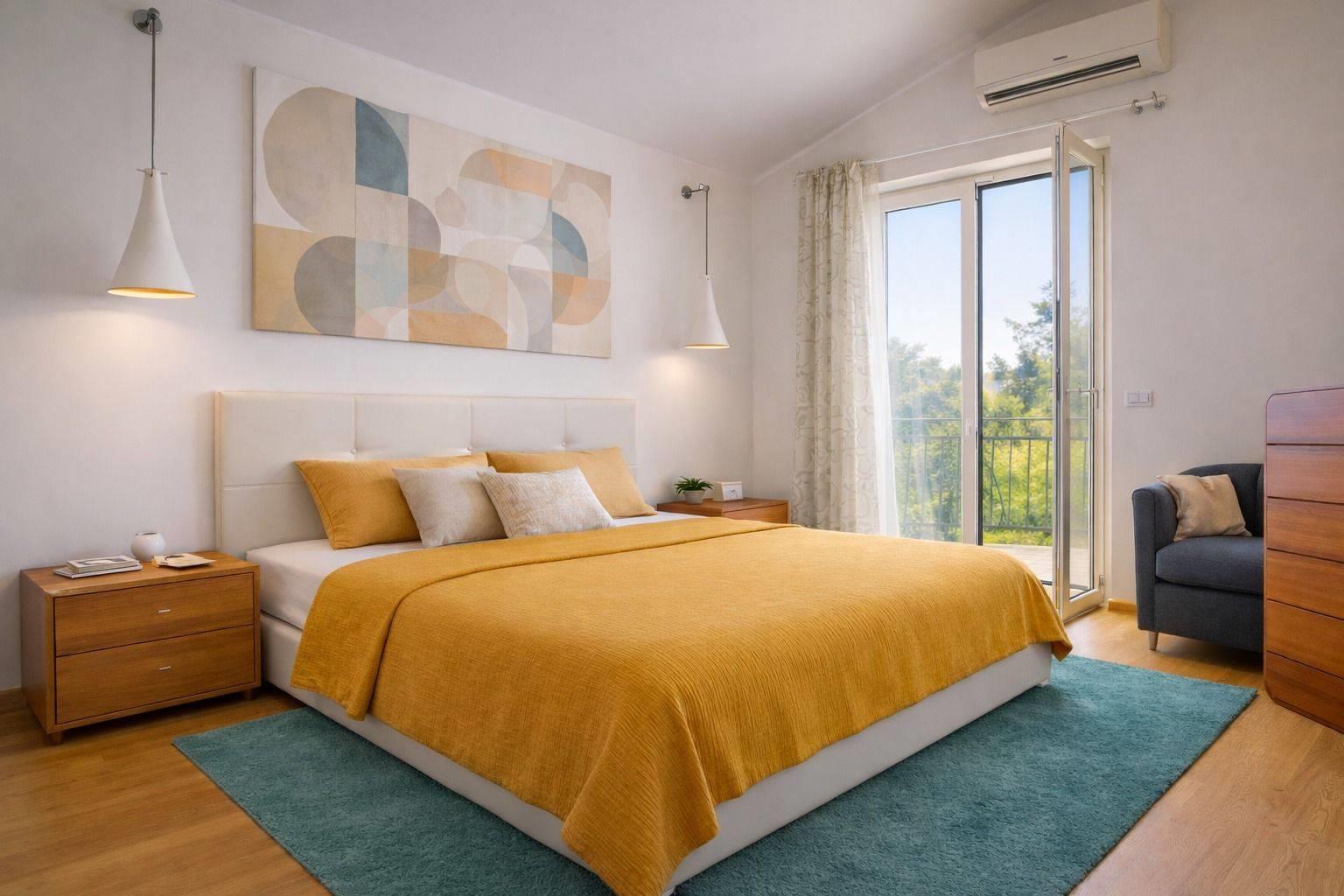 Il primo piano ospita quattro camere matrimoniali, tra cui una suite con bagno privato e terrazza.