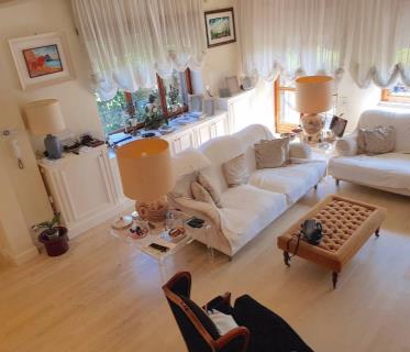 al piano rialzato e' presente un secondo ingresso indipendente attraverso il quale si accede all'ampio salone con camino e vetrate sulla terrazza , alla sala da pranzo e all' attigua cucina con dispensa che possiede anche una utilissima porta finestra sul giardino terrazzato dove poter mangiare nella bella stagione.