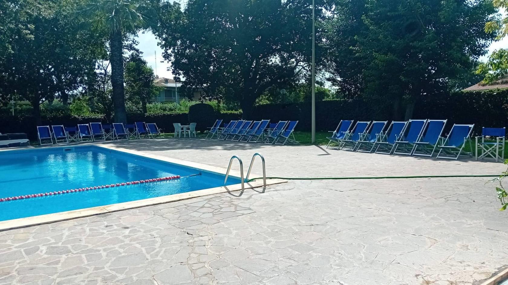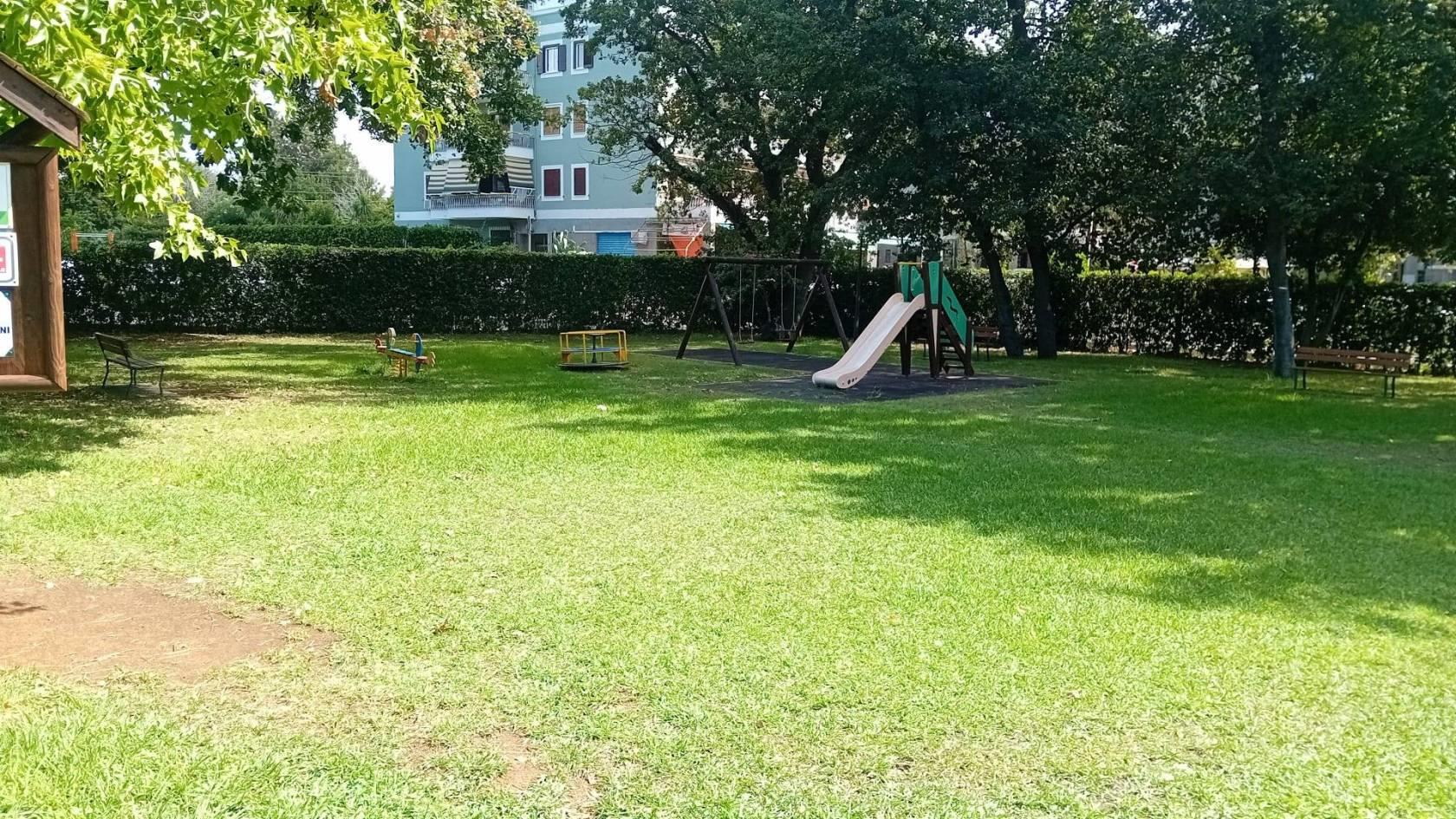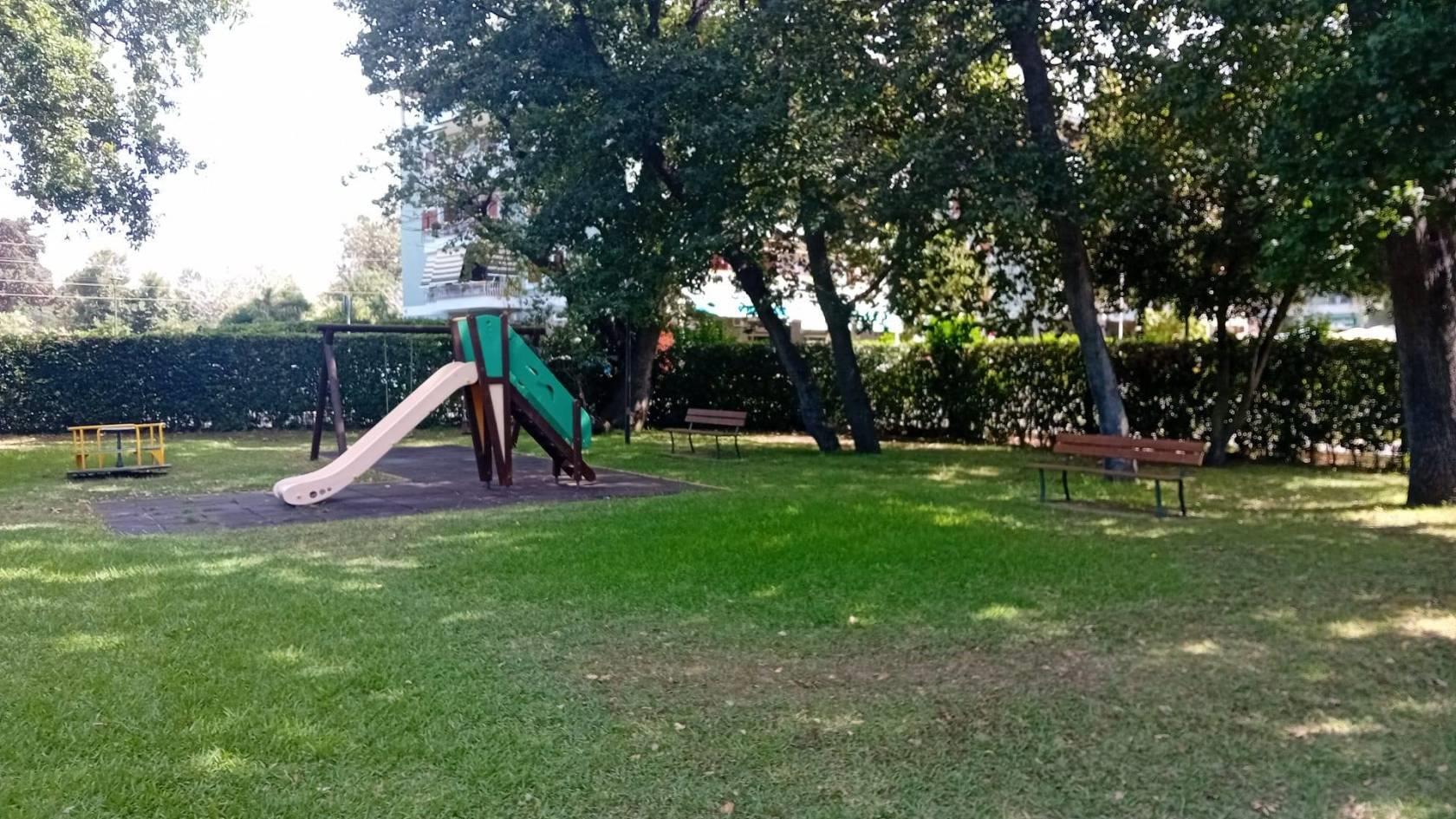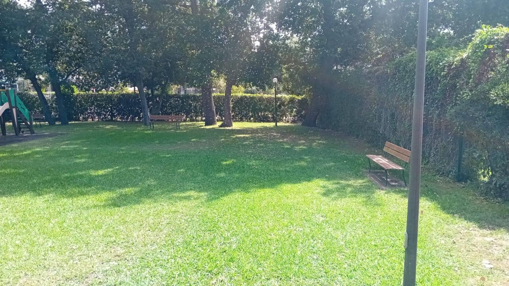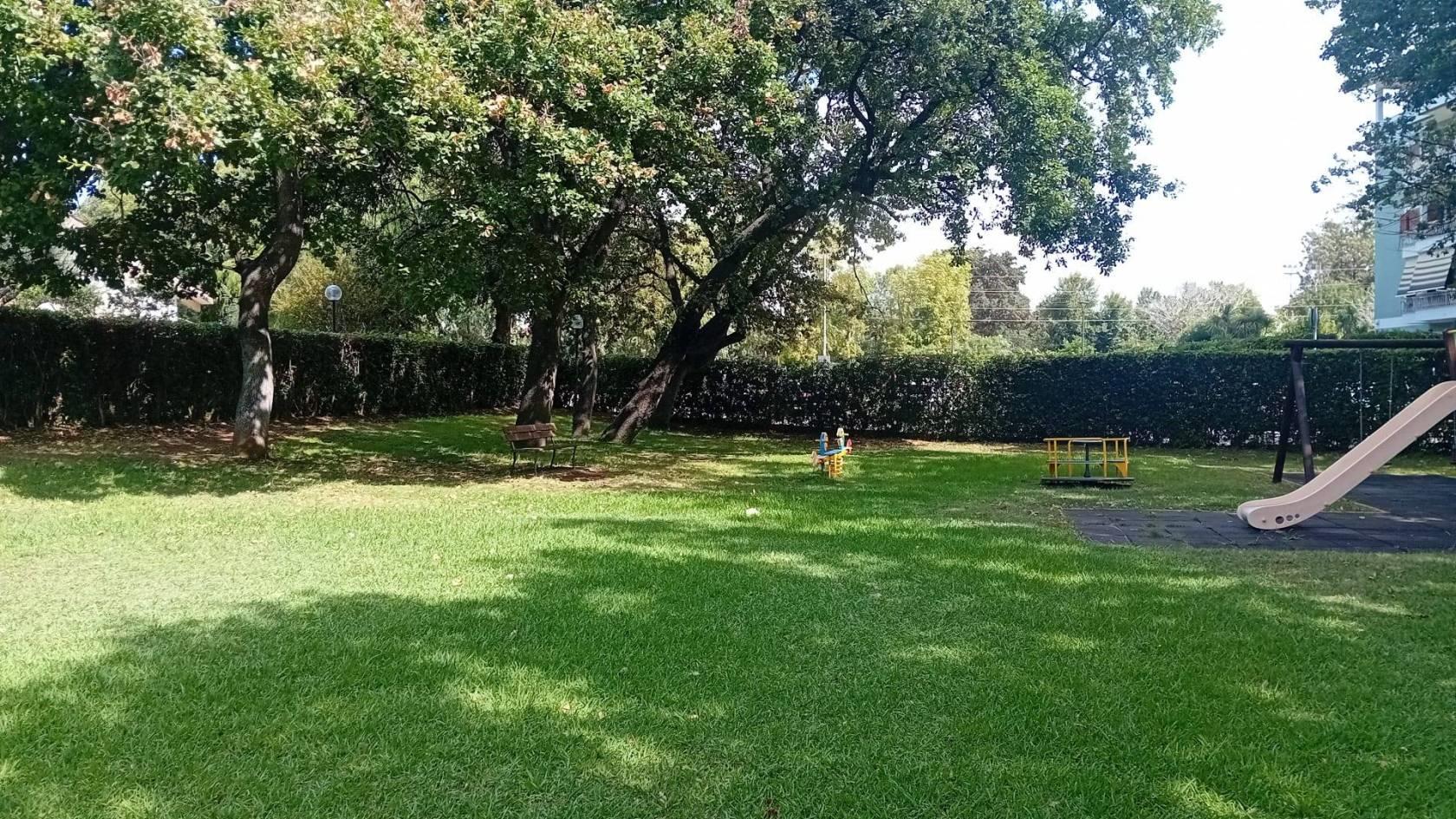 Parcheggio interno ed area verde condominiale con parco giochi per bambini, Piscina condominiale.