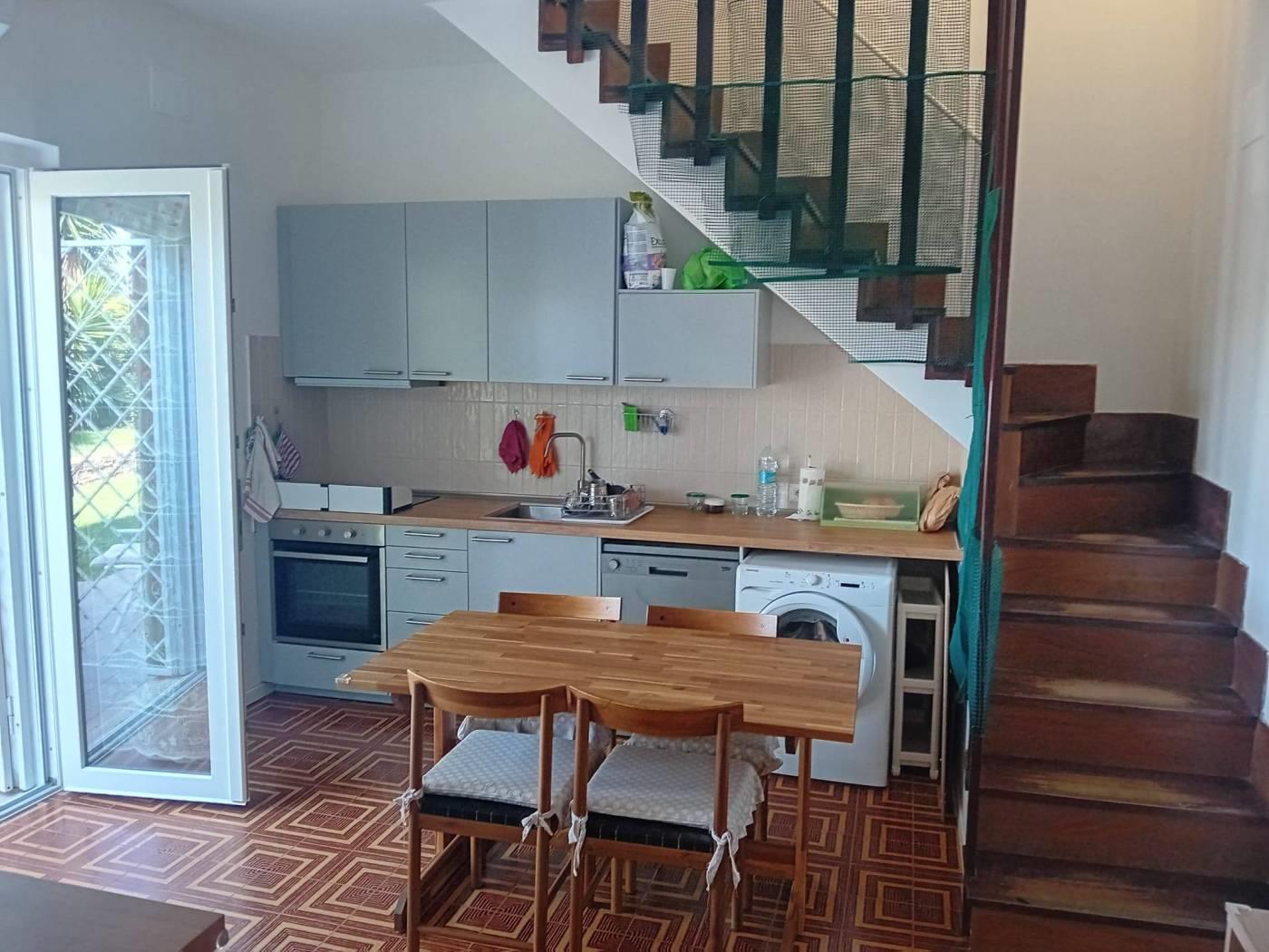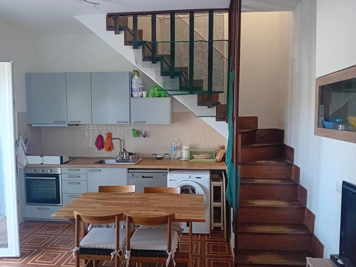 al piano terreno, troviamo un soggiorno con cucina a vista, camera e bagno.