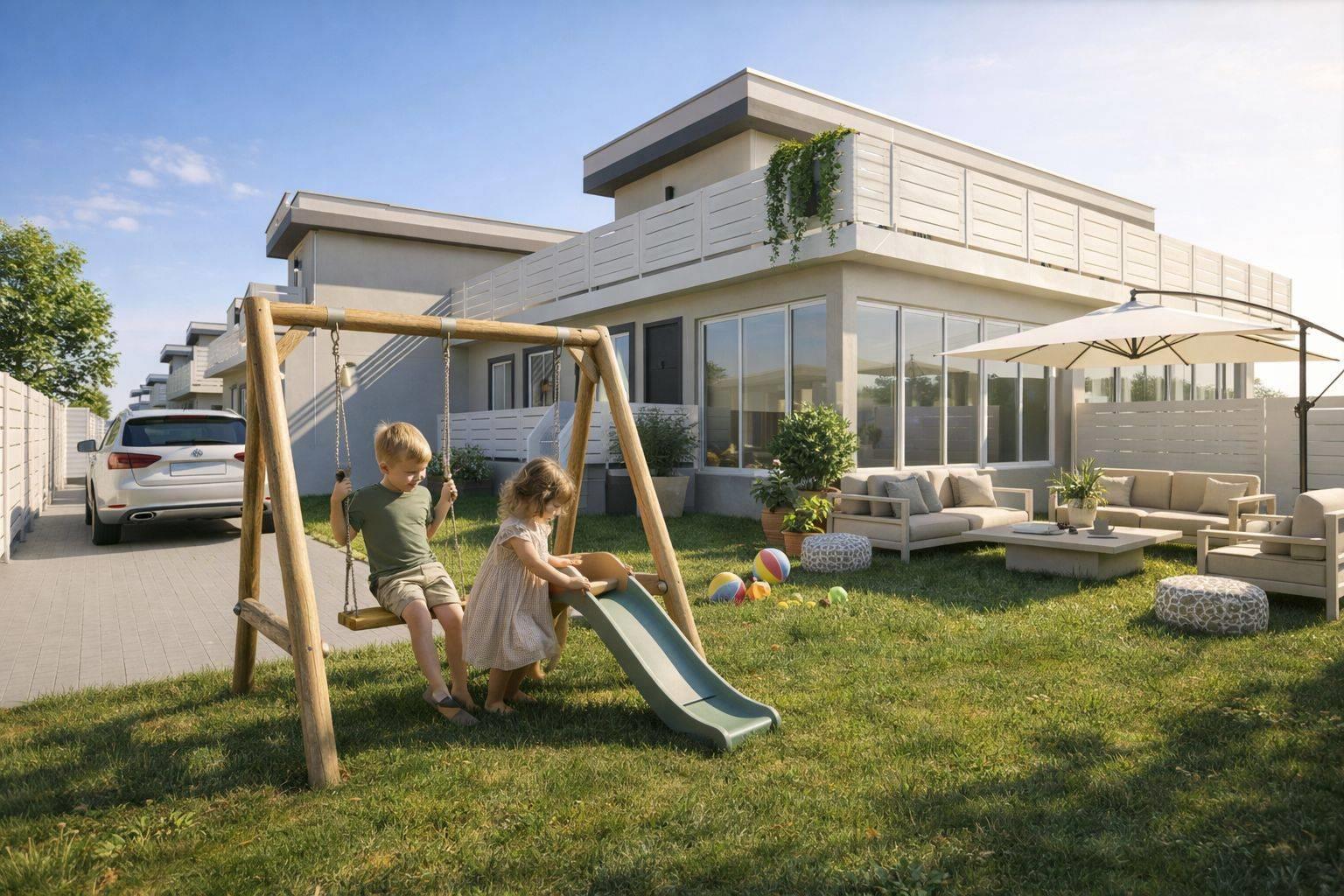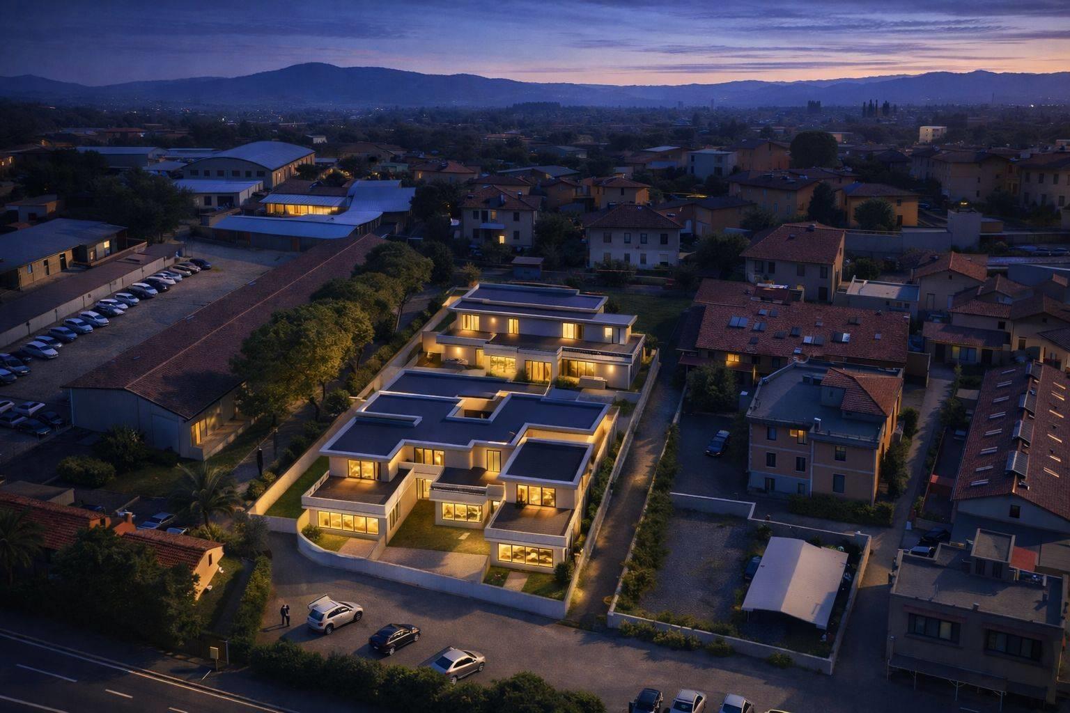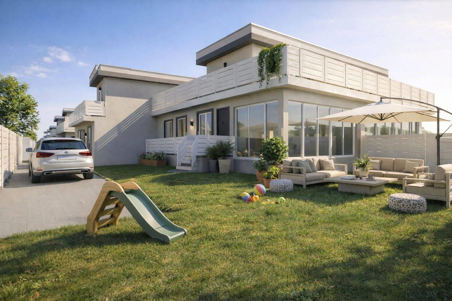 Le soluzioni saranno edificate come ville bilivello con ingressi indipendenti. Il piano d'entrata sarà composto da una zona giorno di considerevoli dimensioni arricchita da serra bioclimatica; nello stesso piano, tramite disimpegno si accederà alla zona notte in cui saranno collocate la camera da letto padronale, una cameretta ed un bagno. Salendo al primo piano, troveremo un ulteriore camera da letto con un secondo bagno sempre finestrato e questo piano avrà l'uscita su un ampio terrazzo privato. Le soluzioni avranno riscaldamento radiante a pavimento su entrambi i piani alimentato a pompa di calore, ed il raffrescamento, sempre gestito a pompa di calore, sarà garantito tramite Hydrosplit che verranno installati dalla società costruttrice assicurando così prestazioni elevate. Le ville saranno in classe energetica elevata per garantire il massimo dell'efficienza energetica; saranno infatti installati 5 Kw di pannelli fotovoltaici privati con batteria di accumulo già installata da 6 kw. Ogni abitazione sarà consegnata con colonnina per ricarica di macchine elettriche, posizionato all'interno di ogni giardino privato, e con impianto di allarme e videocamere già installato con possibilità di controllo tramite telefono. . Possibilità di personalizzare le rifiniture interne in base ai propri gusti. L'agenzia IMMOBILIARE SIMONETTI metterà a disposizione dei clienti l'interior designer di studio al fine di aiutare i futuri acquirenti a immaginare e realizzare internamente la propria prossima abitazione.