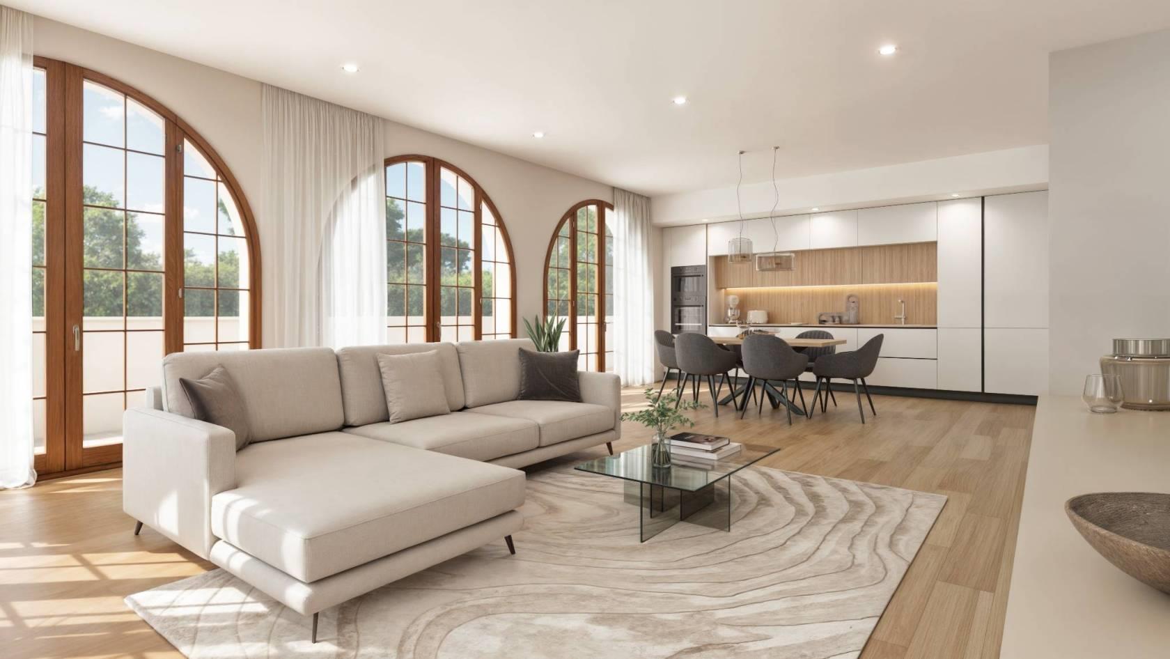 Si accede all'interno dell'abitazione dalla grande terrazza, e varcando la soglia, si viene accolti da un living luminoso, grazie alle ampie vetrate che inondano di luce naturale lo spazio. La zona
