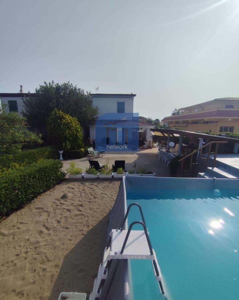 Parliamo di una comoda metratura interna con un giardino di proprietà di ampia metratura con piscina fuori terra e grazie alla sua vicinanza al mare può essere sfruttato come una seconda casa per il mare.