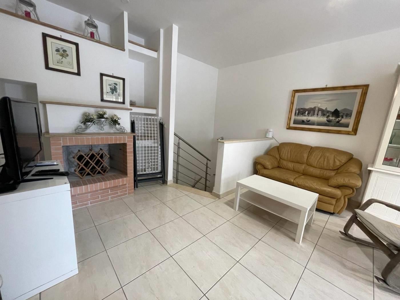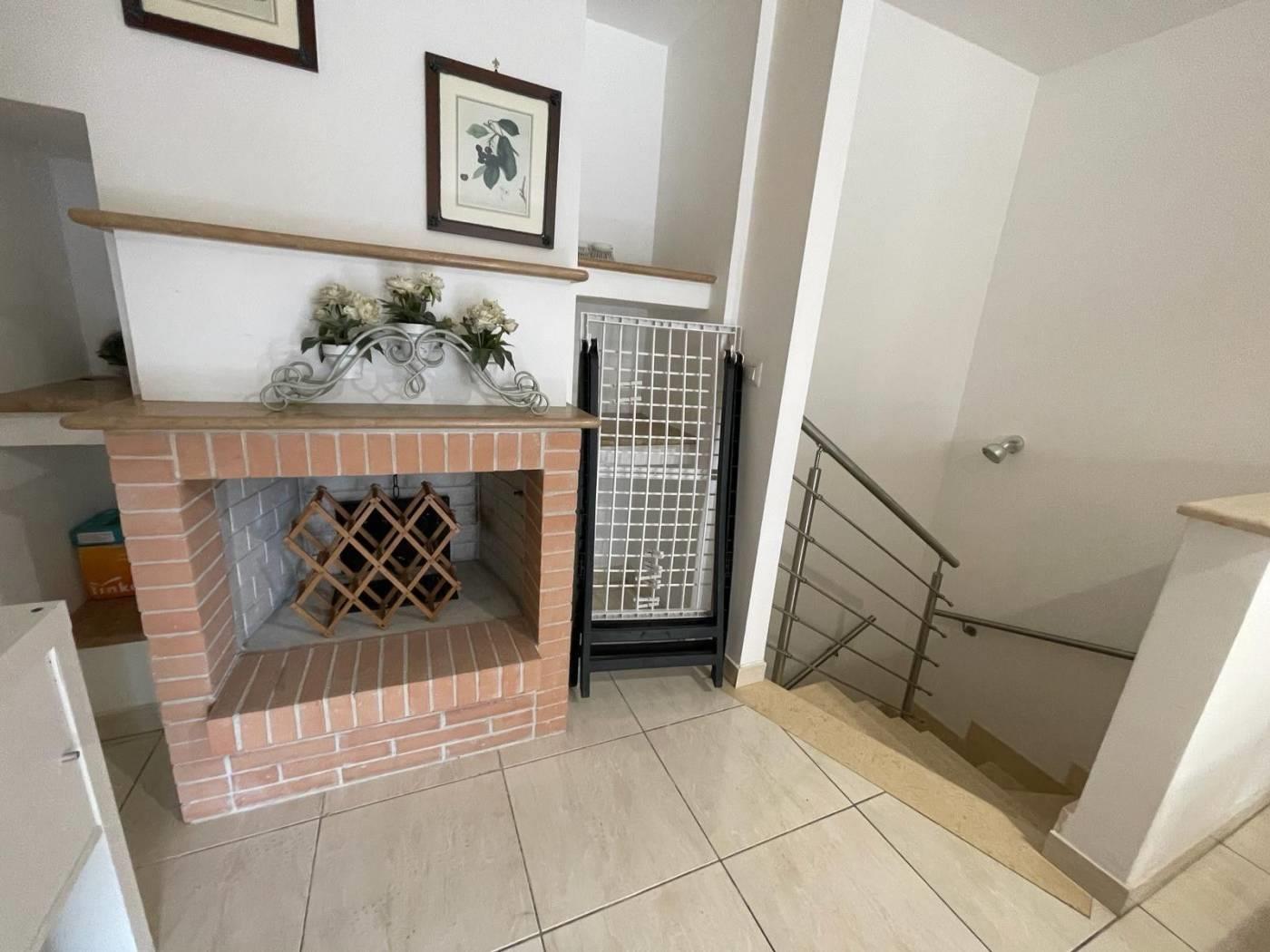 L'ingresso principale si apre su un ampio soggiorno luminoso, arredato con gusto e dotato di camino per le fredde serate invernali.