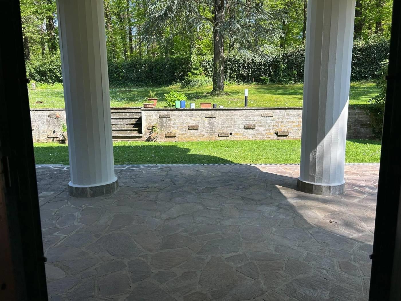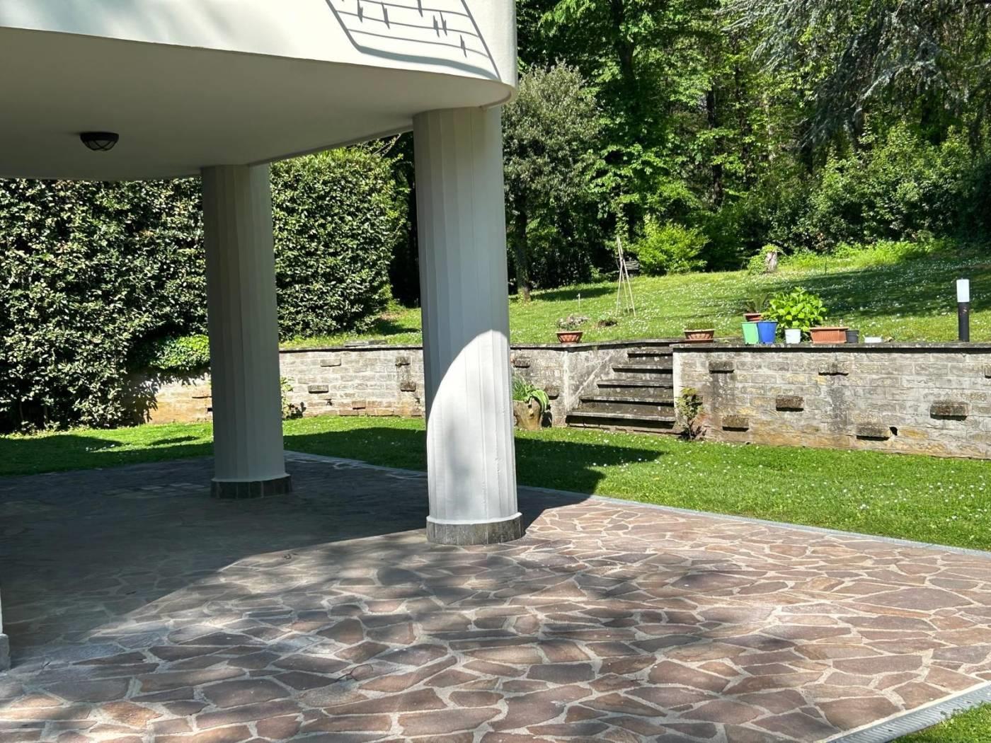 Scopri questa particolare porzione di bifamiliare, immersa in un lotto di circa 2.500 mq, situata nel prestigioso Consorzio Monte Gentile.