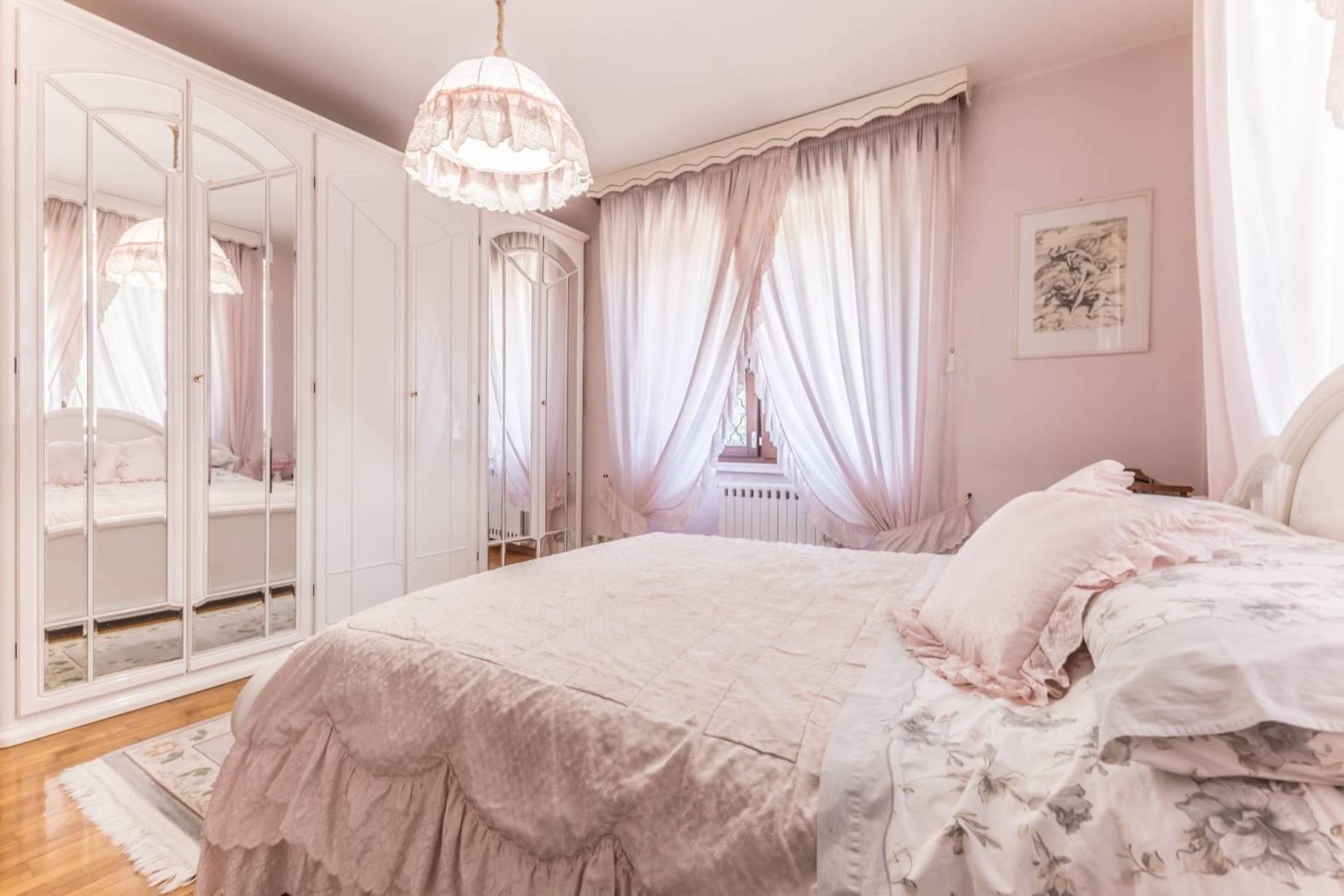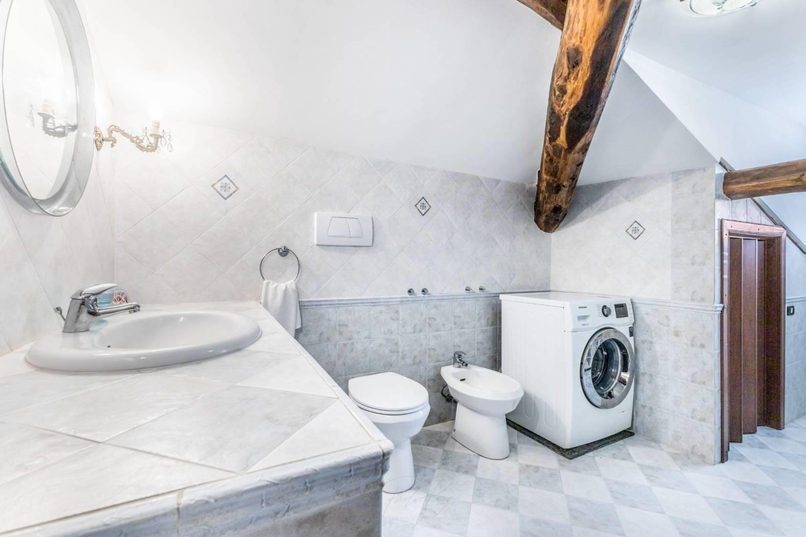 Al piano primo un comodo disimpegno, una camera matrimoniale, altre due camere letto singole ed un bagno, la particolarità del solaio sono le travi a vista.