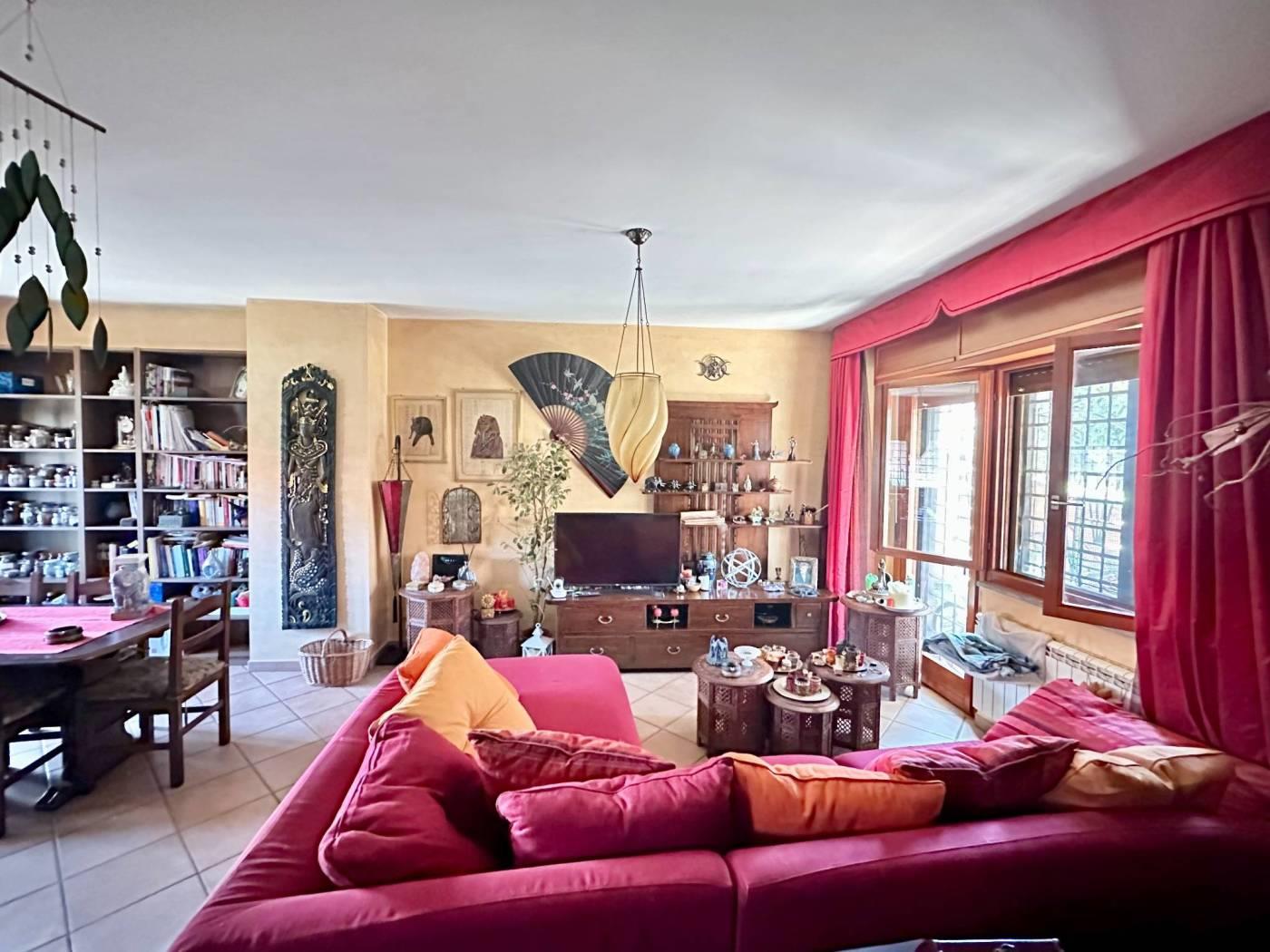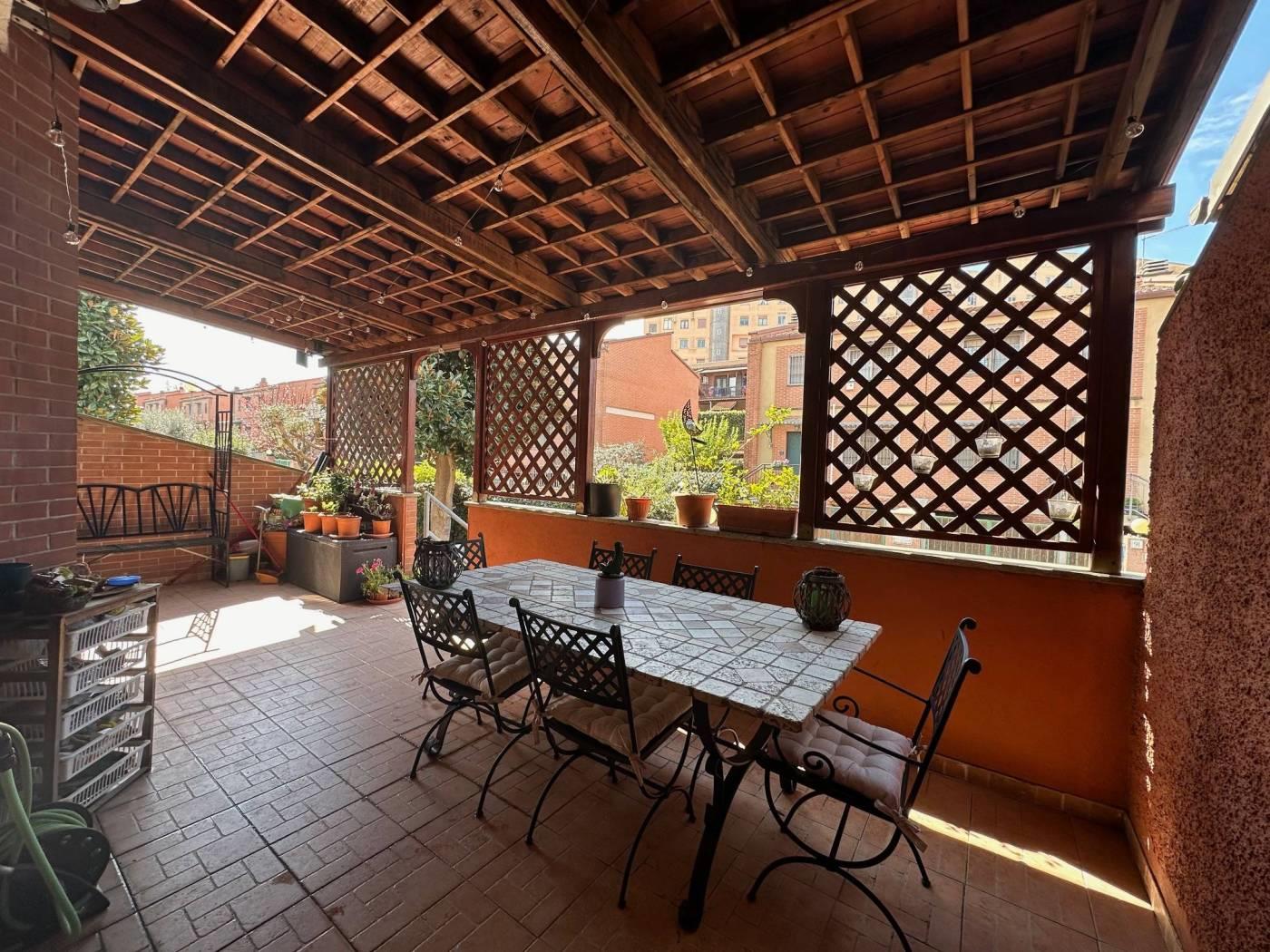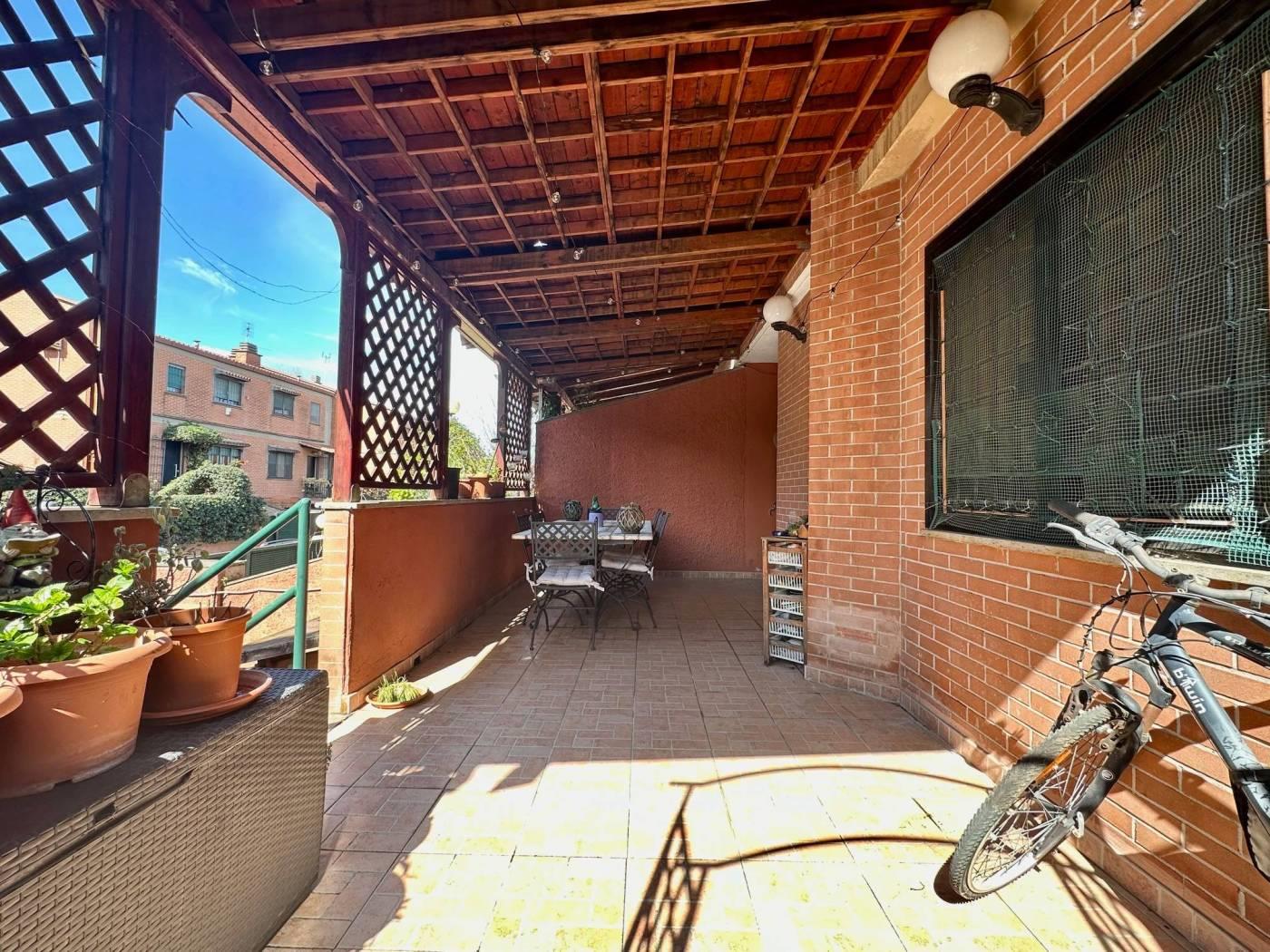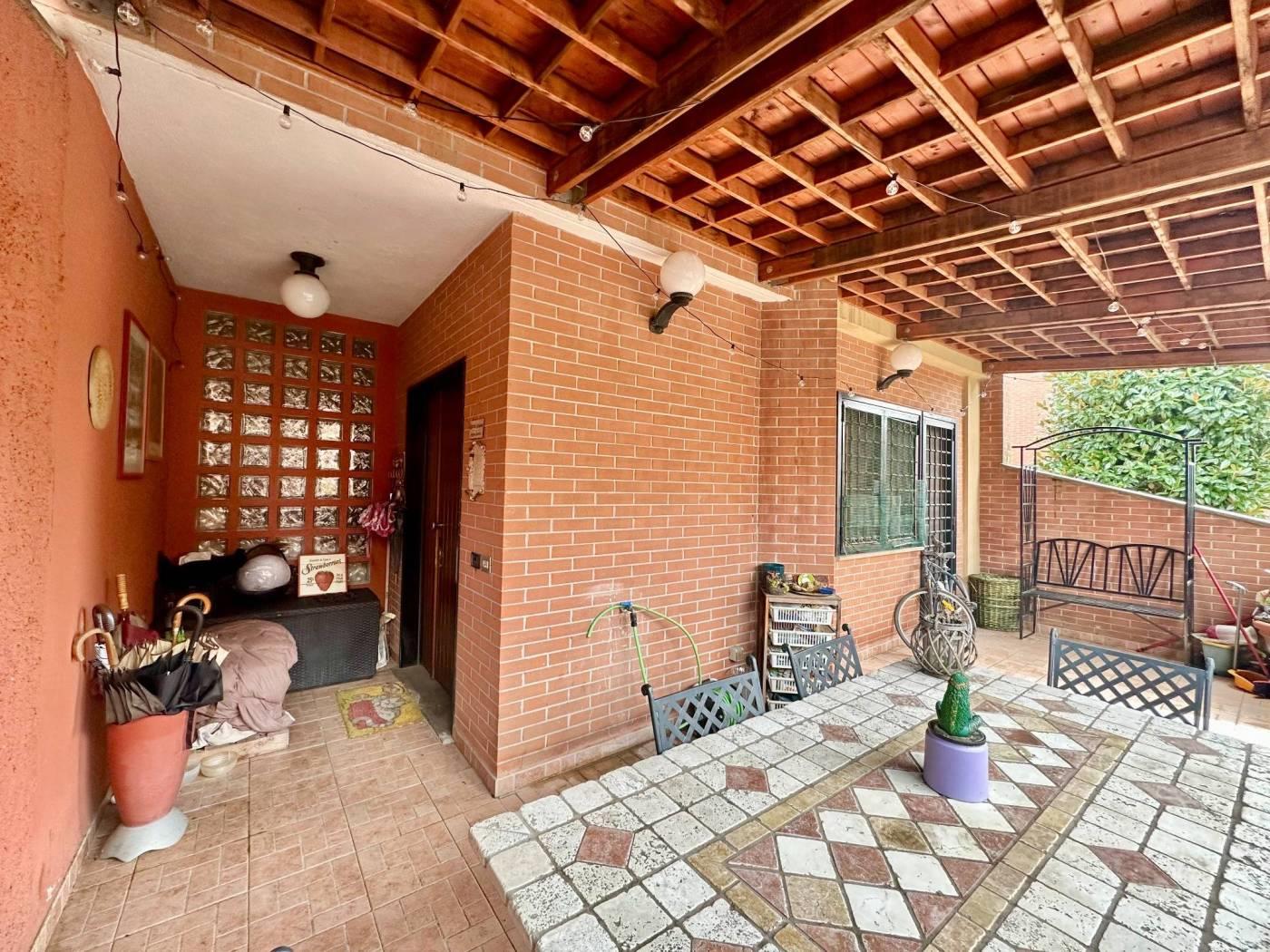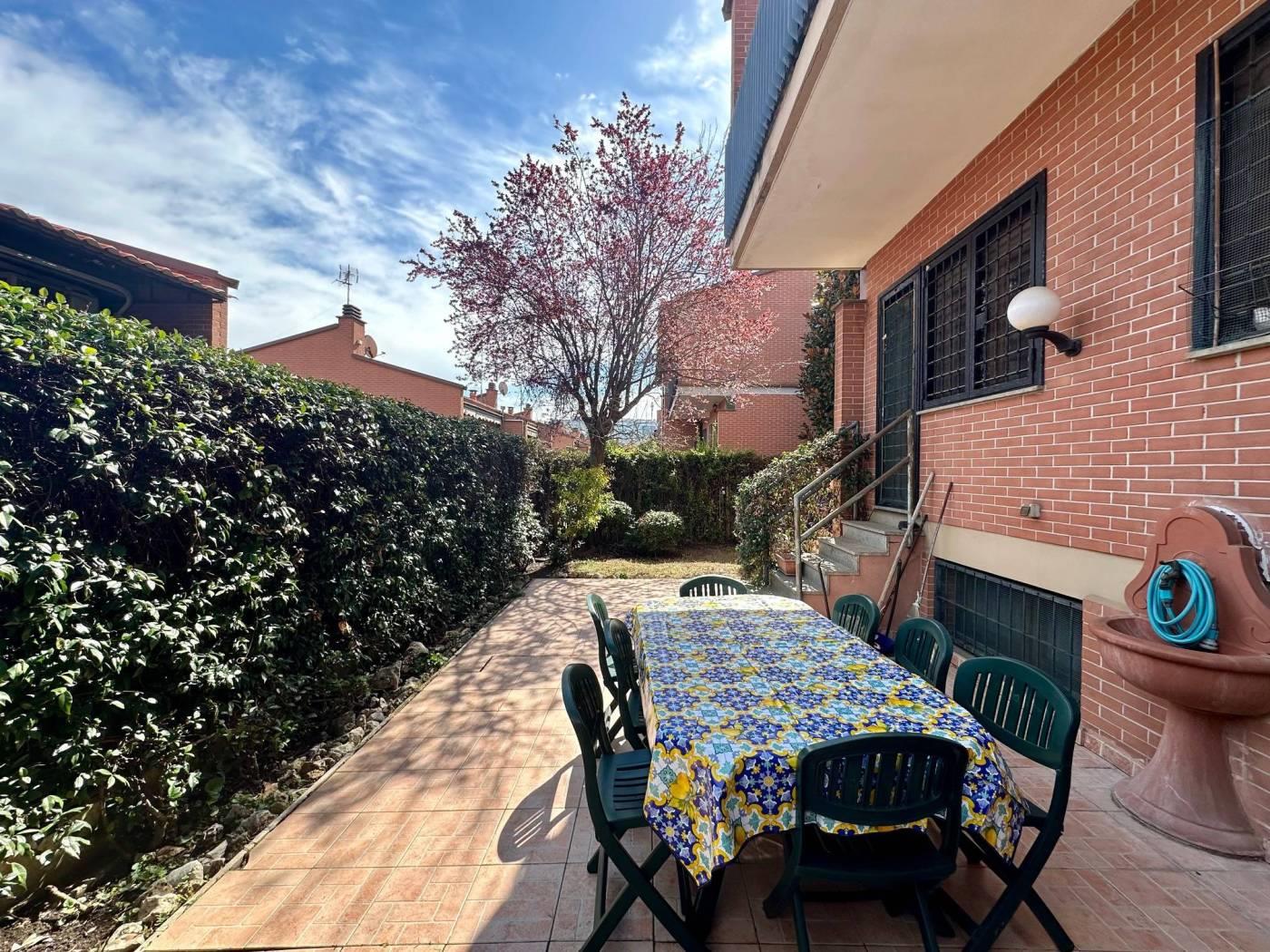 Splendida villetta bifamiliare in vendita a TOR DE CENCI - VILLAGGIO AZZURRO, adiacente a VIA DI MEZZOCAMMINO, precisamente in Via CAMILLO MASTROCINQUE. La proprietà si estende su una superficie di 186 mq catastali e dispone di un ampio giardino di 220 mq.