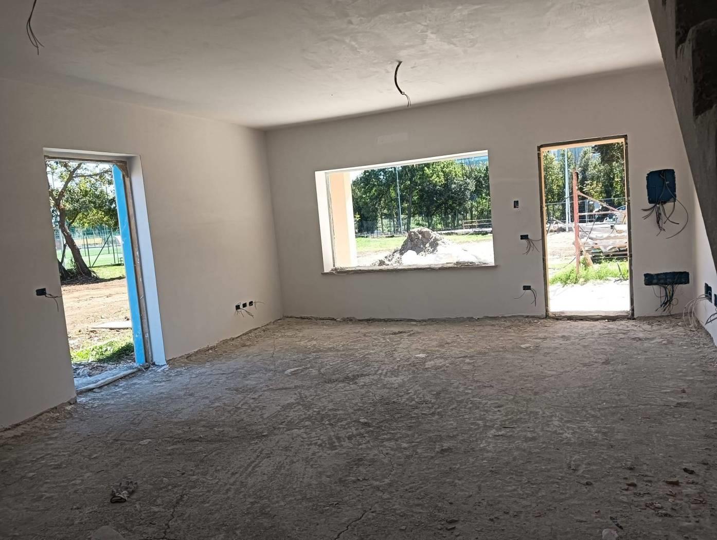 Il villaggio è composto da n. 6 Villini Bifamiliari dislocati su due livelli, di 120 mq al piano terra, composti da: un ampio living con angolo cottura, una camera da letto, un bagno, un portico che si apre sul giardino perimetrale di proprietà e un posto auto, di pertinenza, che accede direttamente al giardino. Al piano superiore, si accede a una camera, cameretta e servizio. Le rifiniture sono di pregio, i pavimenti sono in gres porcellanato effetto legno beige chiaro e grigio (possibile scelta del colore). Il riscaldamento è a pavimento, i pannelli fotovoltaici e pompe di calore, cucine alimentate ad induzione, infissi vetro camera, persiane e porta blindata. I Villini angolari possiedono un giardino di 280 mq. La consegna sarà a maggio 2026. Tale struttura turistico/residenziale è stata creata per un giusto equilibrio di pace e relax totale nel verde e nello stesso tempo a pochi passi dal mare e dalle spiagge di questa splendida cittadina pulita e ben collegata. Prezzo di vendita: a partire da Euro 480.000,00 .