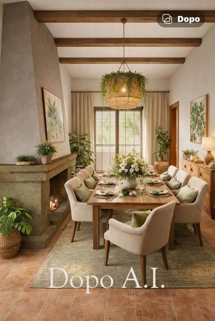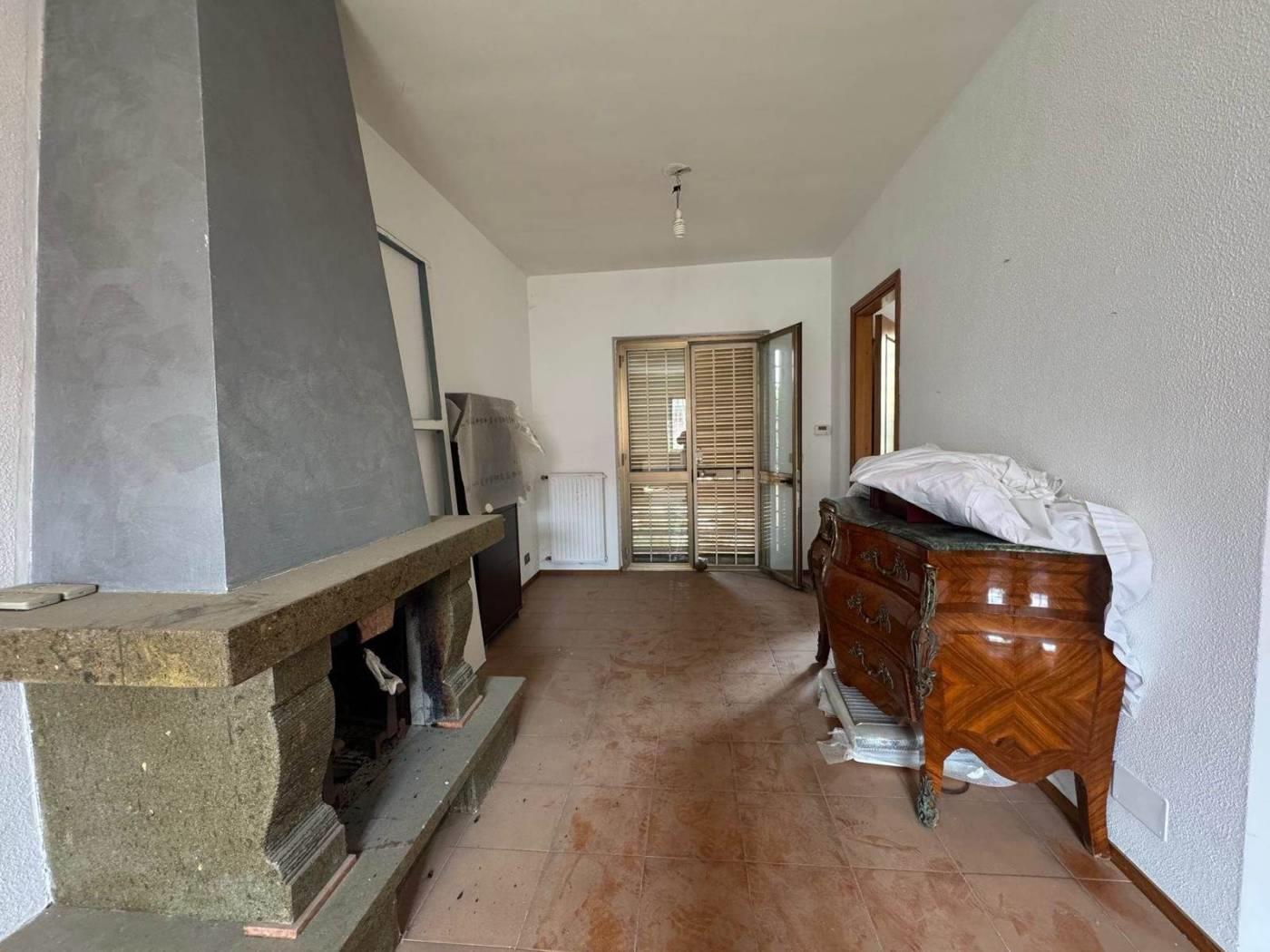 Piano terra: salone con camino, cucina abitabile, bagno di servizio e accesso diretto al giardino privato di circa 50 mq