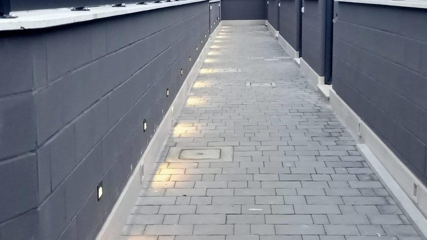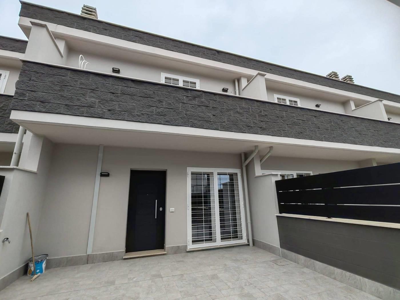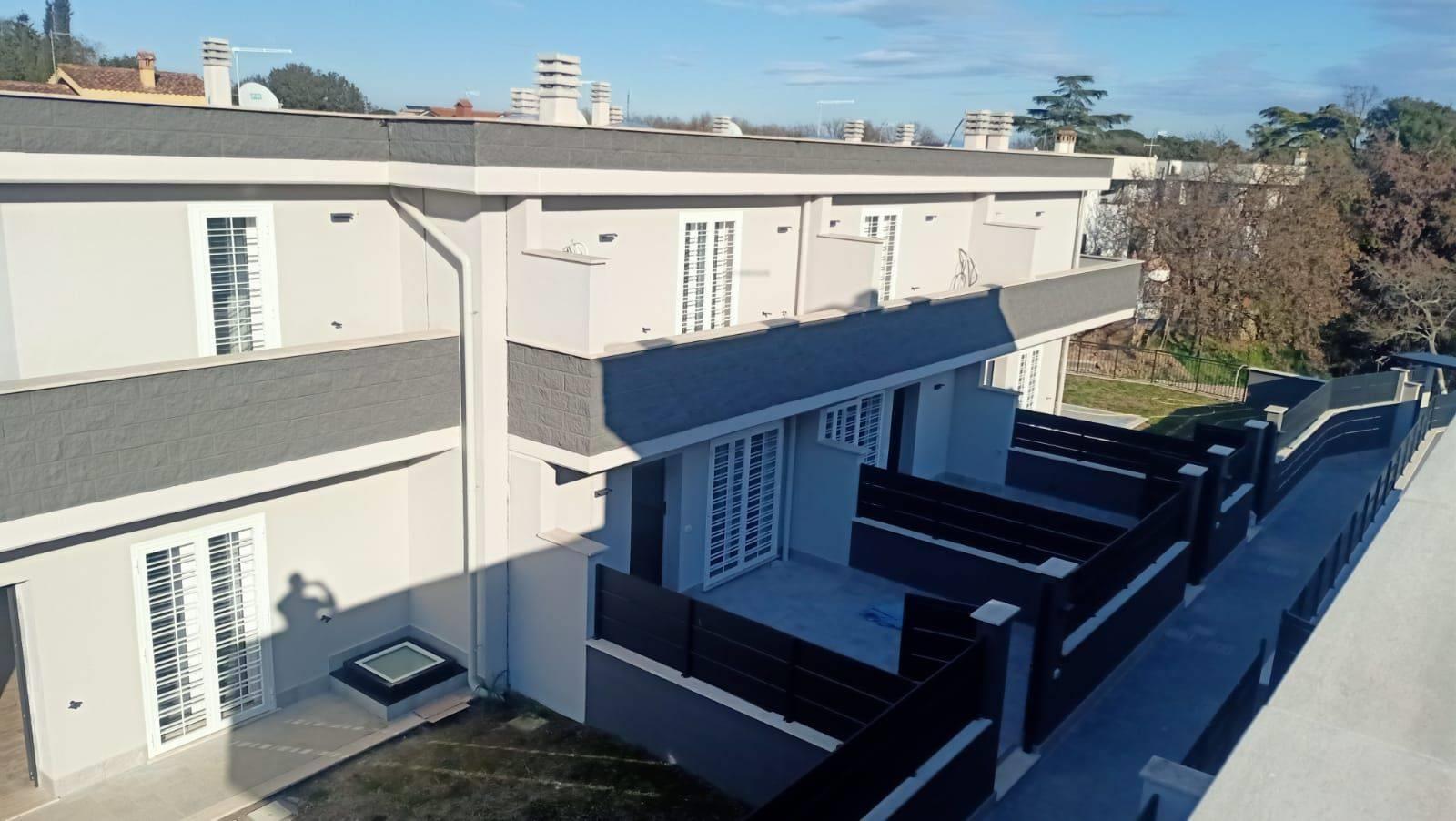 impresa di costruzioni vende villino a schiera posto su tre livelli di nuova costruzione ed indipendente con superficie commerciale interna di mq. 108 e con un cortile privato di mq. 33 commerciali e grande garage chiuso (mq. 54) con basculante automatizzata e posto auto scoperto fronte garage.