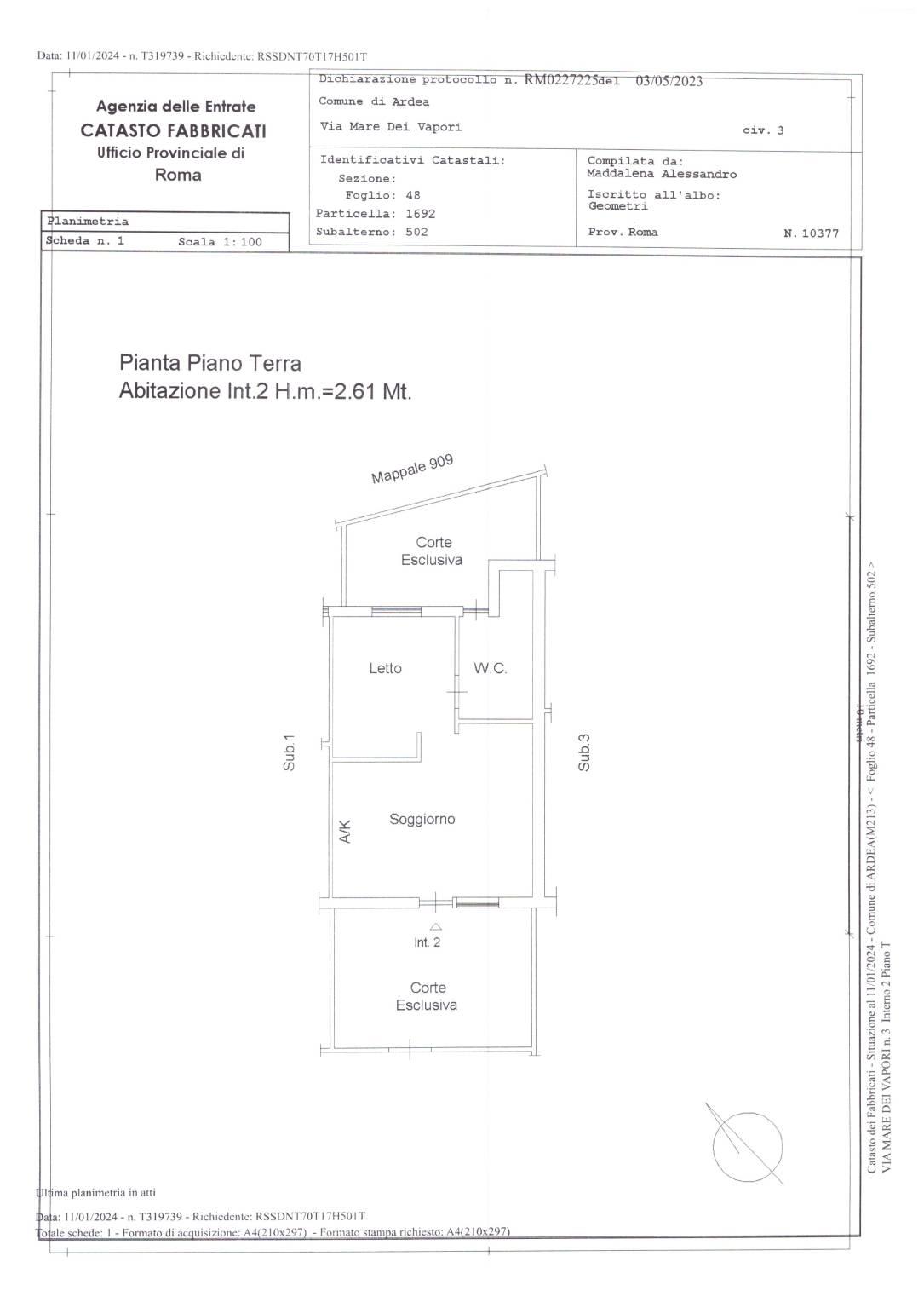 Proponiamo in vendita un villino a schiera, porzione centrale, su unico livello fuori terra, situato in Via Mare dei Vapori n. 3, Ardea. L'immobile è composto da: soggiorno con angolo cottura, una camera da letto, un bagno, corte esclusiva di pertinenza, posto auto interno scoperto con accesso da cancello carrabile e pedonale. Sono presenti gli allacci in fogna ed alla rete idrica. Non c'è condominio. Attualmente il villino è locato con regolare contratto a canone concordato (cedolare secca al 10%) con prima scadenza gennaio 2027, che garantisce una rendita sicura e costante. Alla prima scadenza contrattuale, l'immobile potrà essere reso disponibile per esigenze personali di residenza, nei termini di legge. L'immobile è regolare sia a livello urbanistico che catastale, quindi mutuabile al 100%.