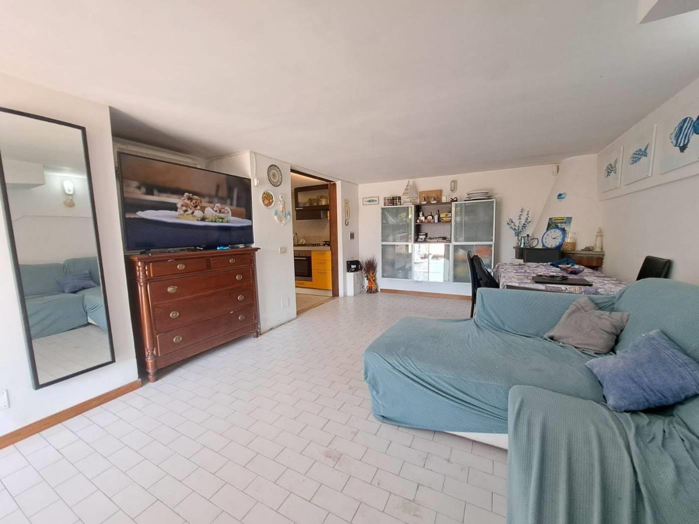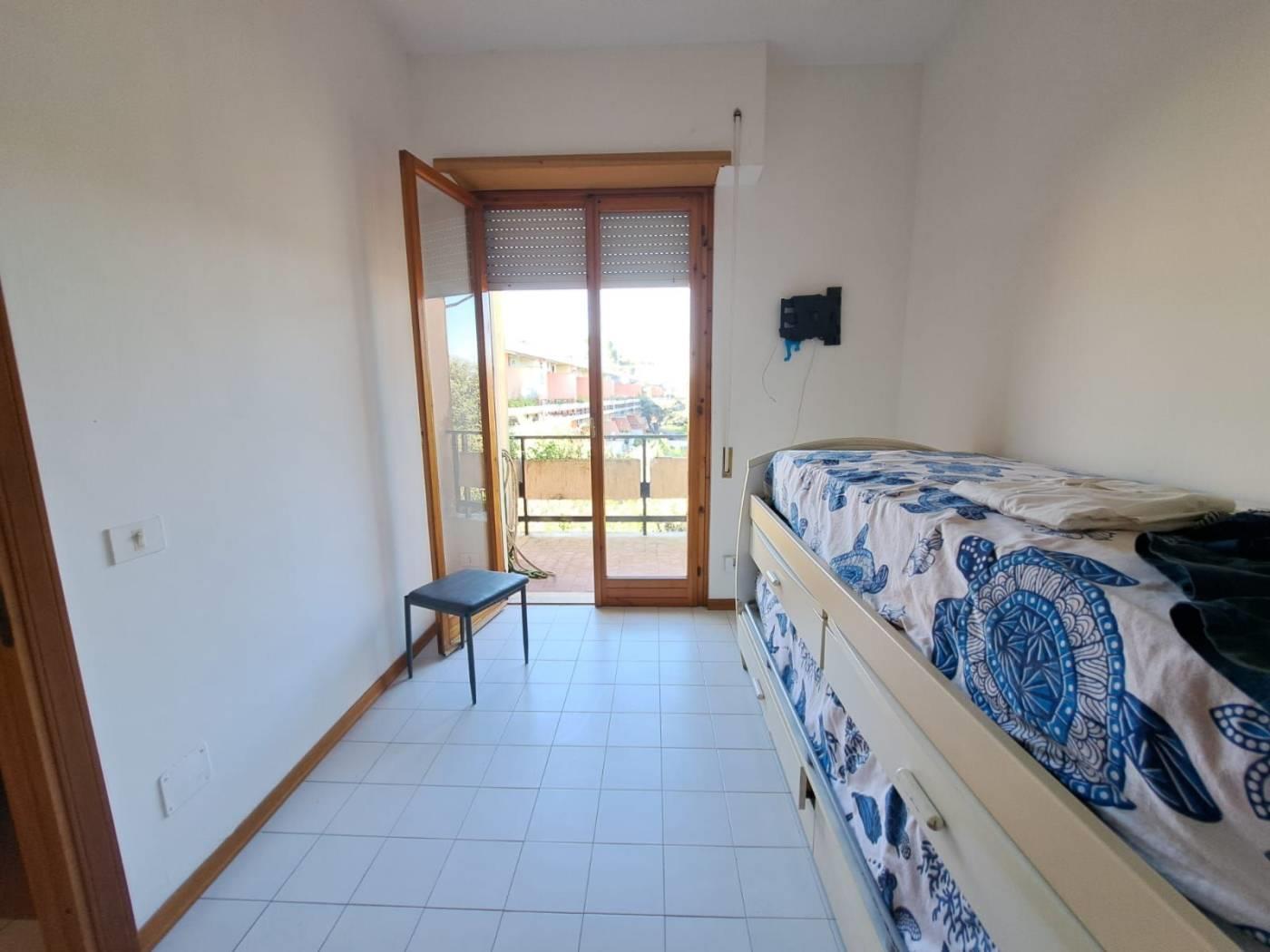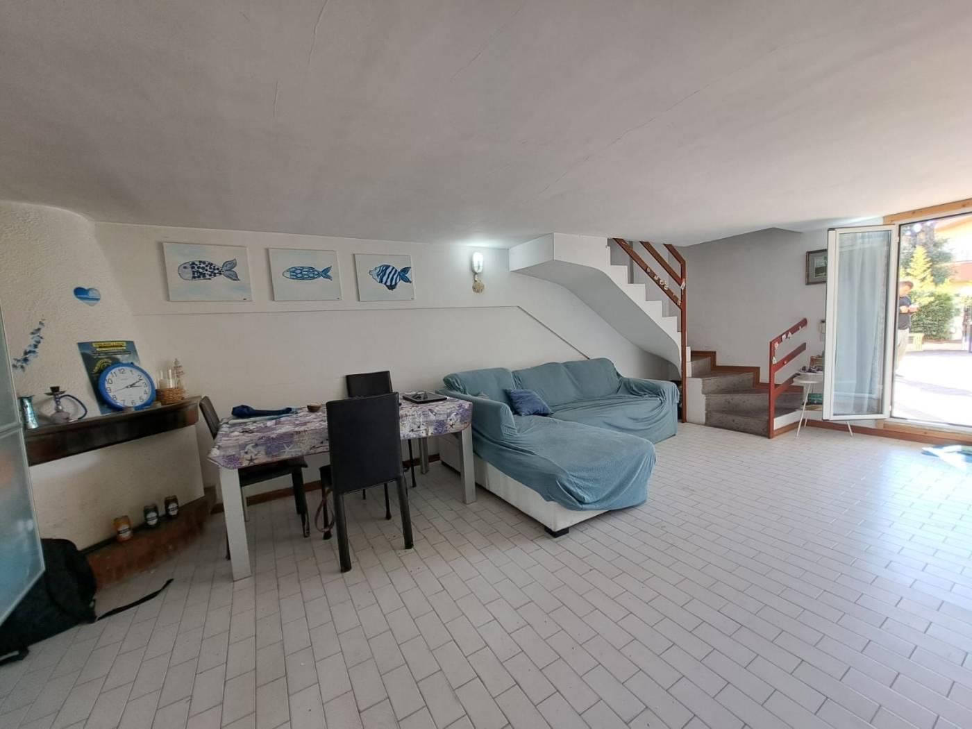 La proprietà, sviluppata su tre livelli, offre una distribuzione interna ideale per famiglie o per chi desidera una seconda casa al mare con ampi spazi. Al piano terra si trovano un salone luminoso, un cucinotto e una pratica zona lavanderia. Il primo piano è composto da una camera da letto e un bagno, mentre al secondo piano si trovano altre due camere e un ulteriore bagno.