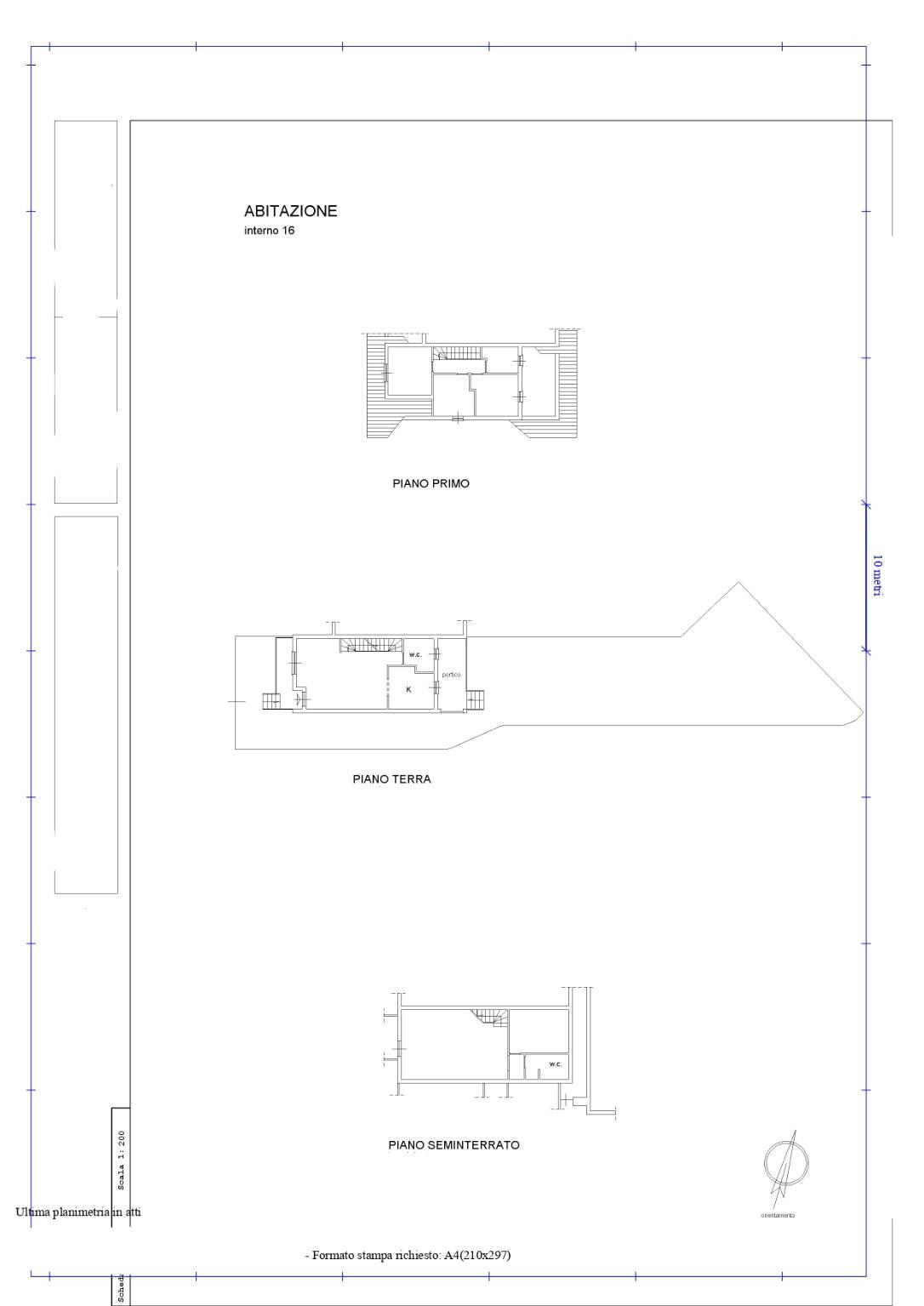 Piano Primo: zona notte composta da tre camere, bagno con vasca e terrazzo abitabile.