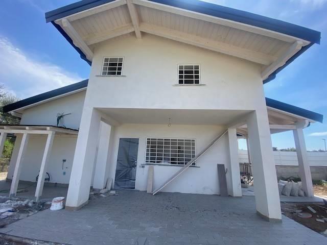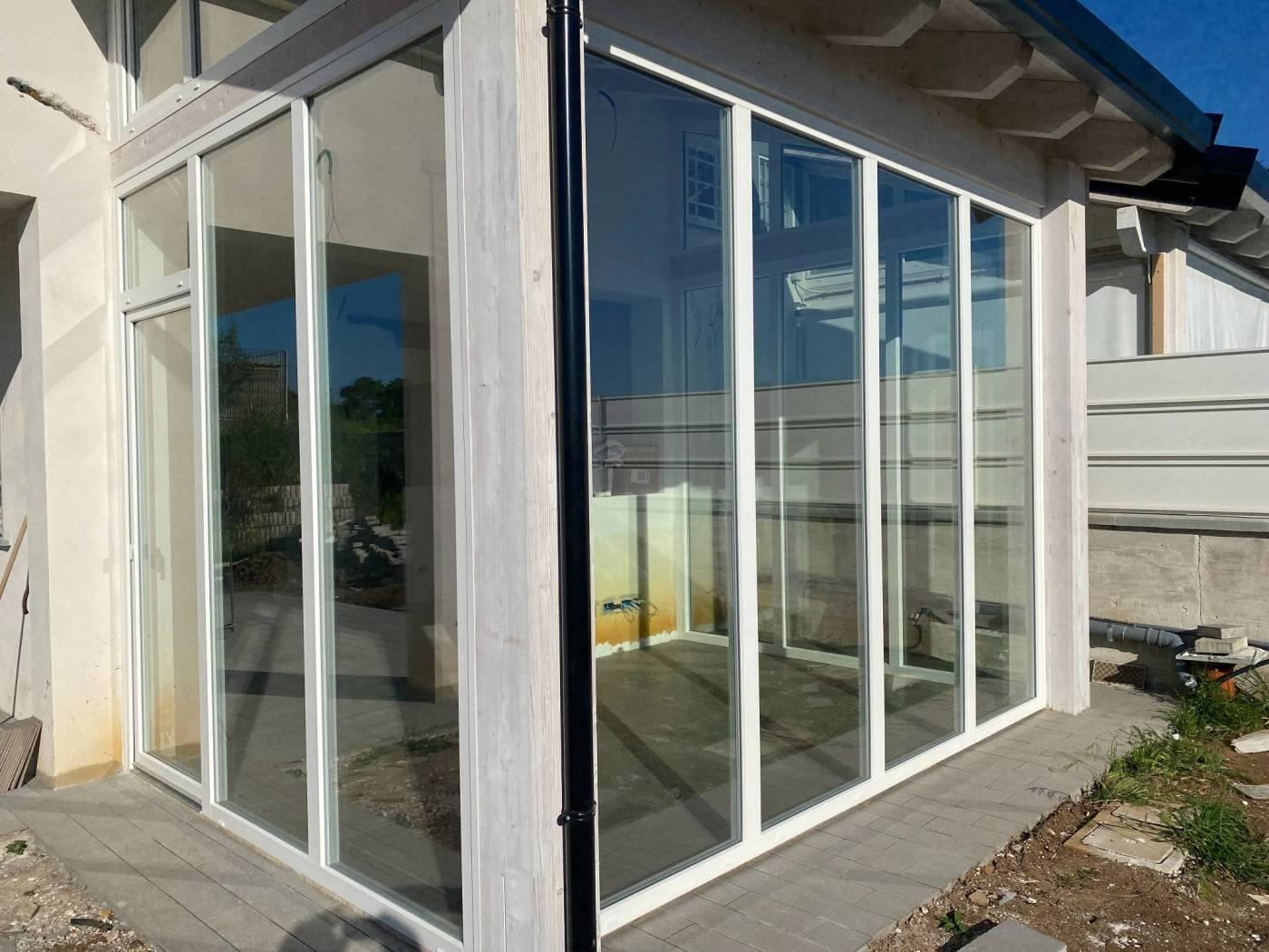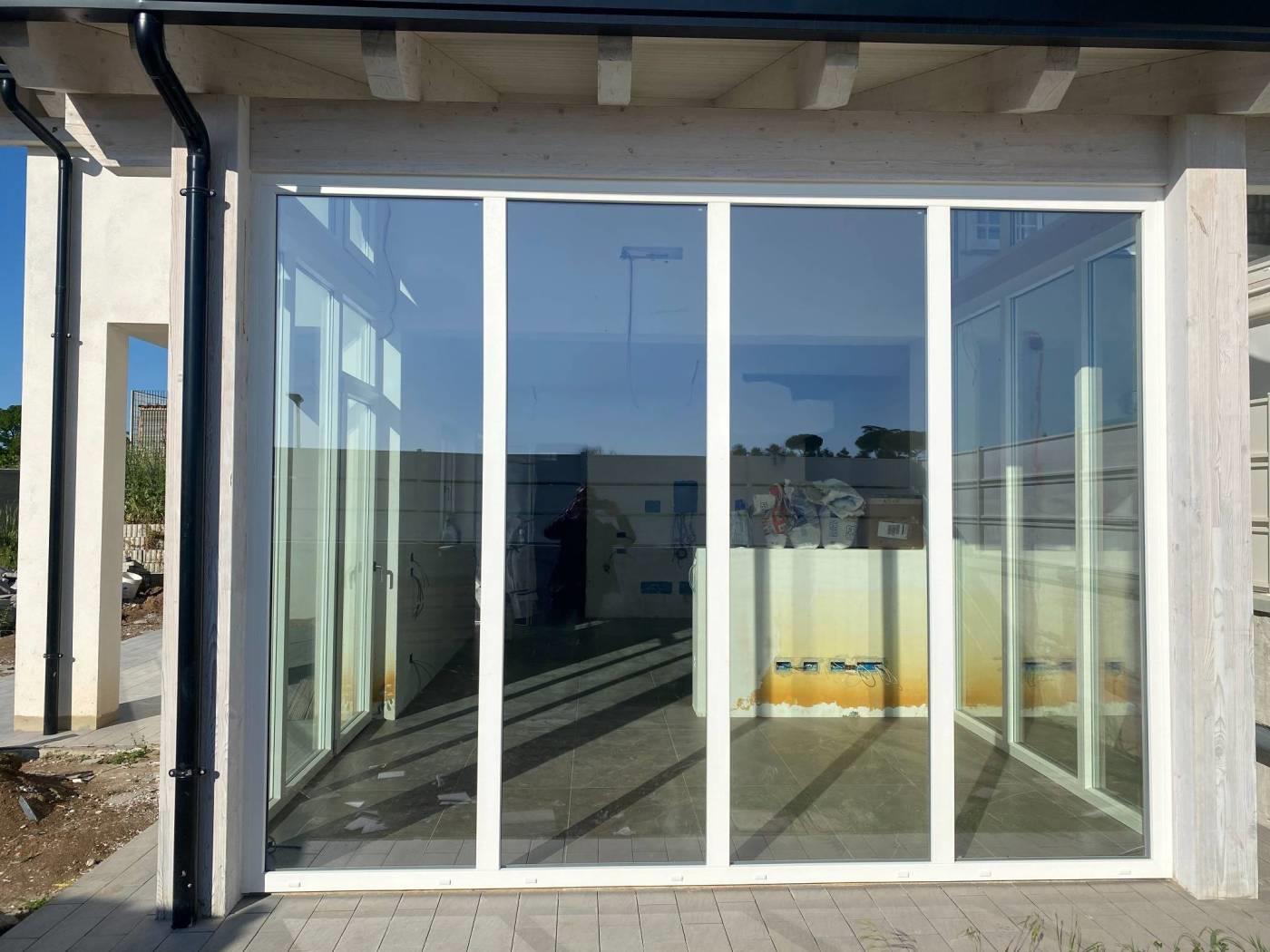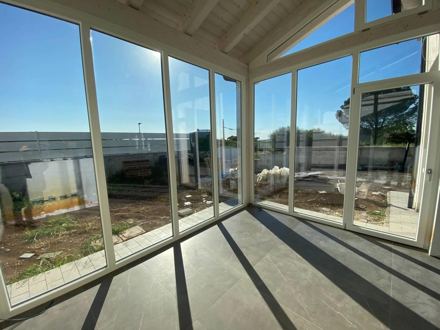 La Villa dispone di entrata indipendente sia pedonale che carrabile e sarà realizzata in "CLASSE A" con tetto in legno lamellare di colore bianco, cappotto termico, pannelli solari, impianto fotovoltaico esclusivo di 4 KW, infissi ultima generazione e grate di sicurezza
