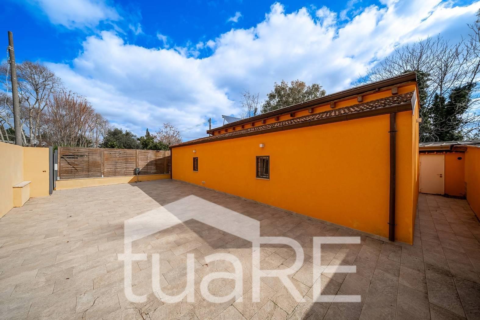 Magliana ad. (Piazza Antonio Meucci) IRRIPETIBILE VILLINO INDIPENDENTE con splendido ampio GIARDINO PAVIMENTATO perimetrale di circa 150mq CON ACCESSO CARRABILE E POSTI AUTO, completamente e FINEMENTE RISTRUTTURATO, silenzioso, luminoso, ingresso, salone con cucina a vista, 2 camere, 2 servizi. (Rif. 1929/st) www.tuare.it