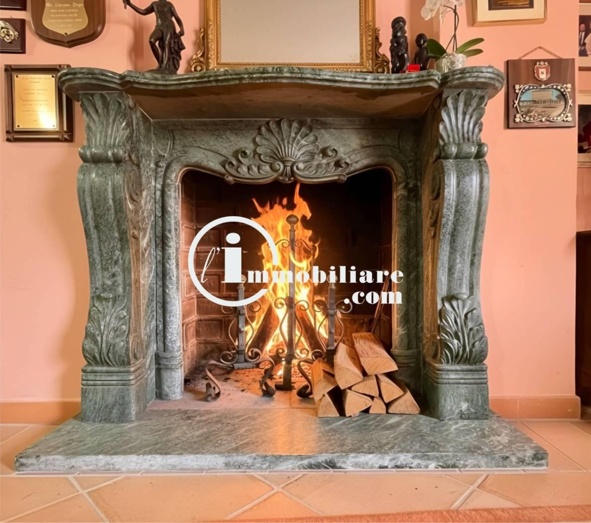 Primo piano: cucina abitabile con terrazza a livello, salotto con camino, camera, bagno e cabina armadio;