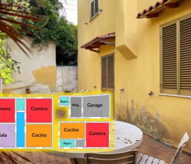 P. T. : ingresso con salone e cucina abitabile con ripostiglio, servizio con doccia ad idromassaggio e ripostiglio . Doppio giardino FRONTE/RETRO a cui si accede sia dalla cucina che dalla sala.