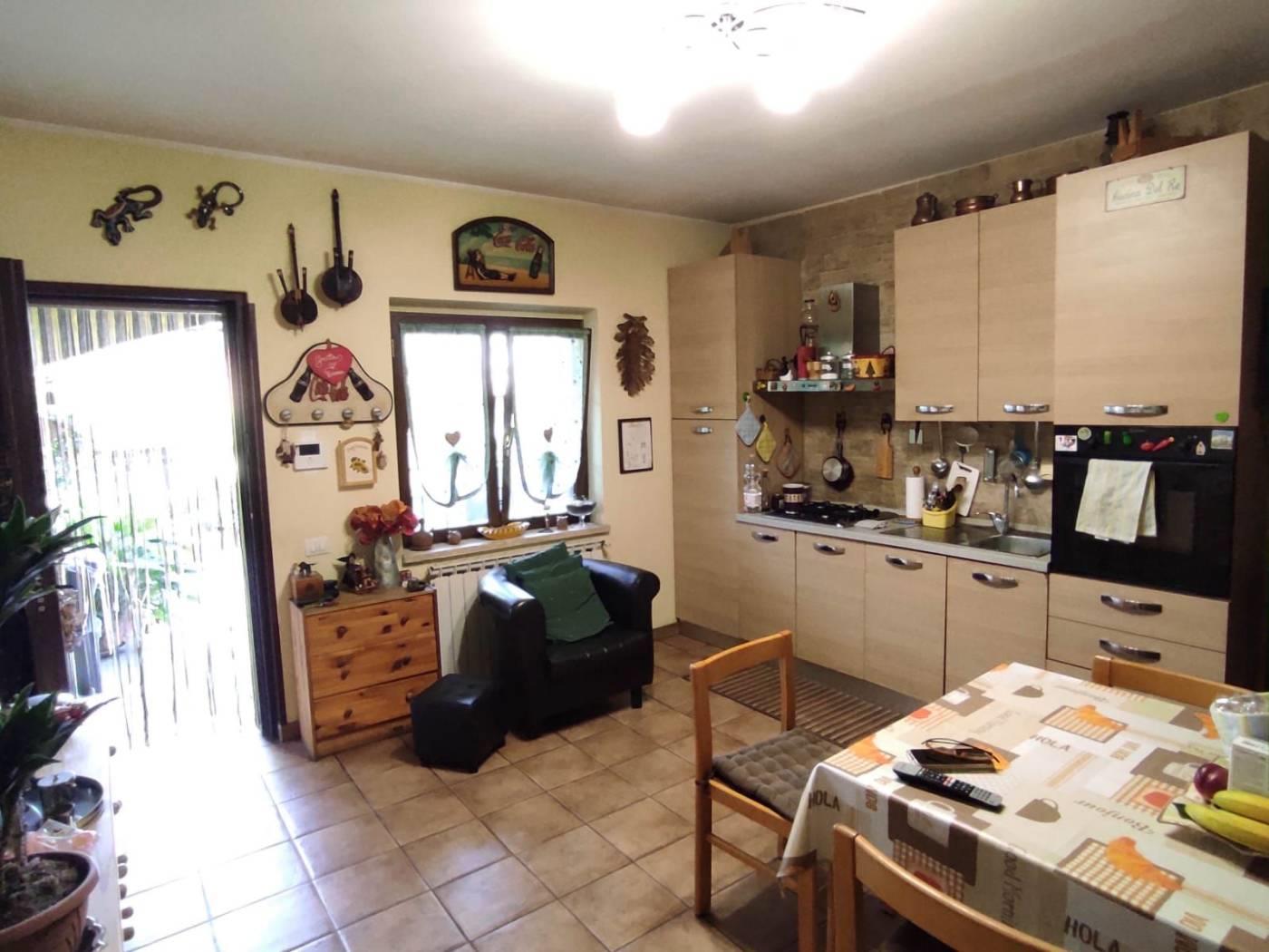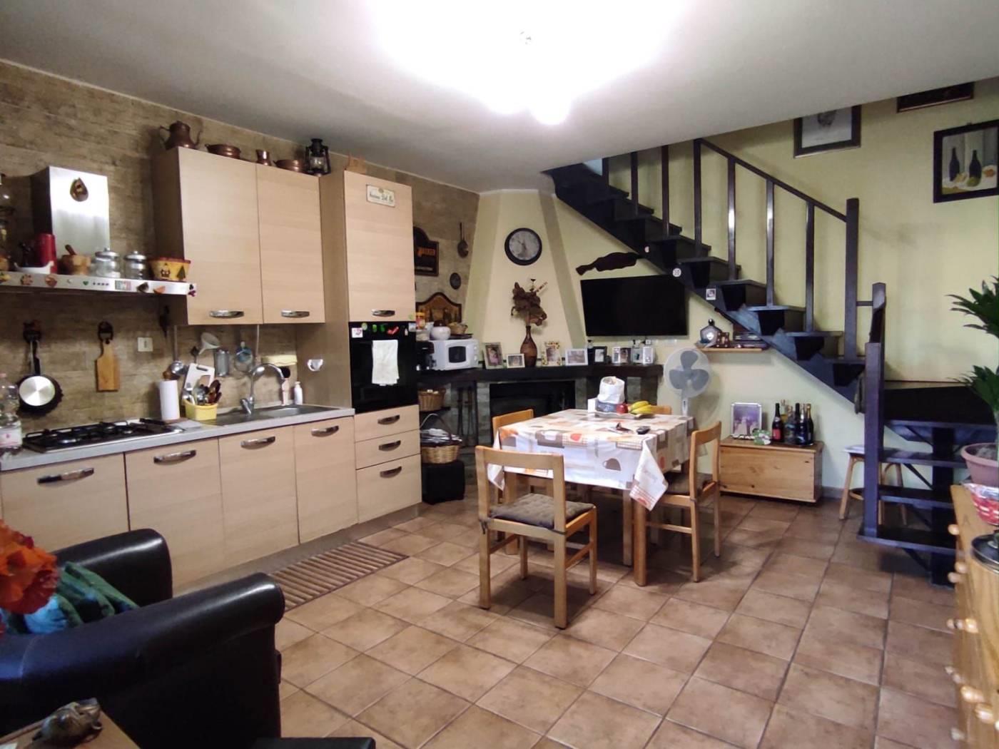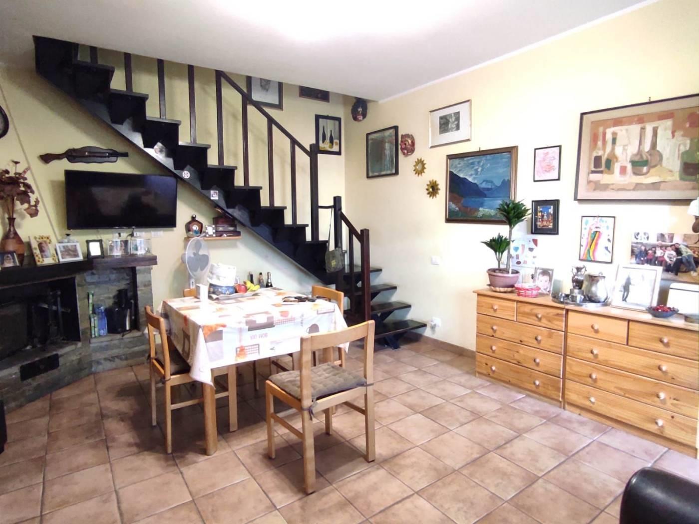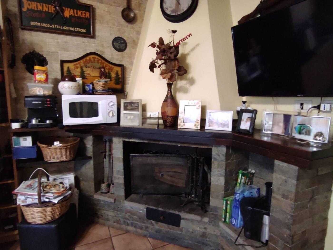 Accediamo all’immobile mediante il giardino pavimentato di 40 mq e passando per la porta d’ingresso troviamo ad accoglierci soggiorno con cucina a vista e splendido camino.