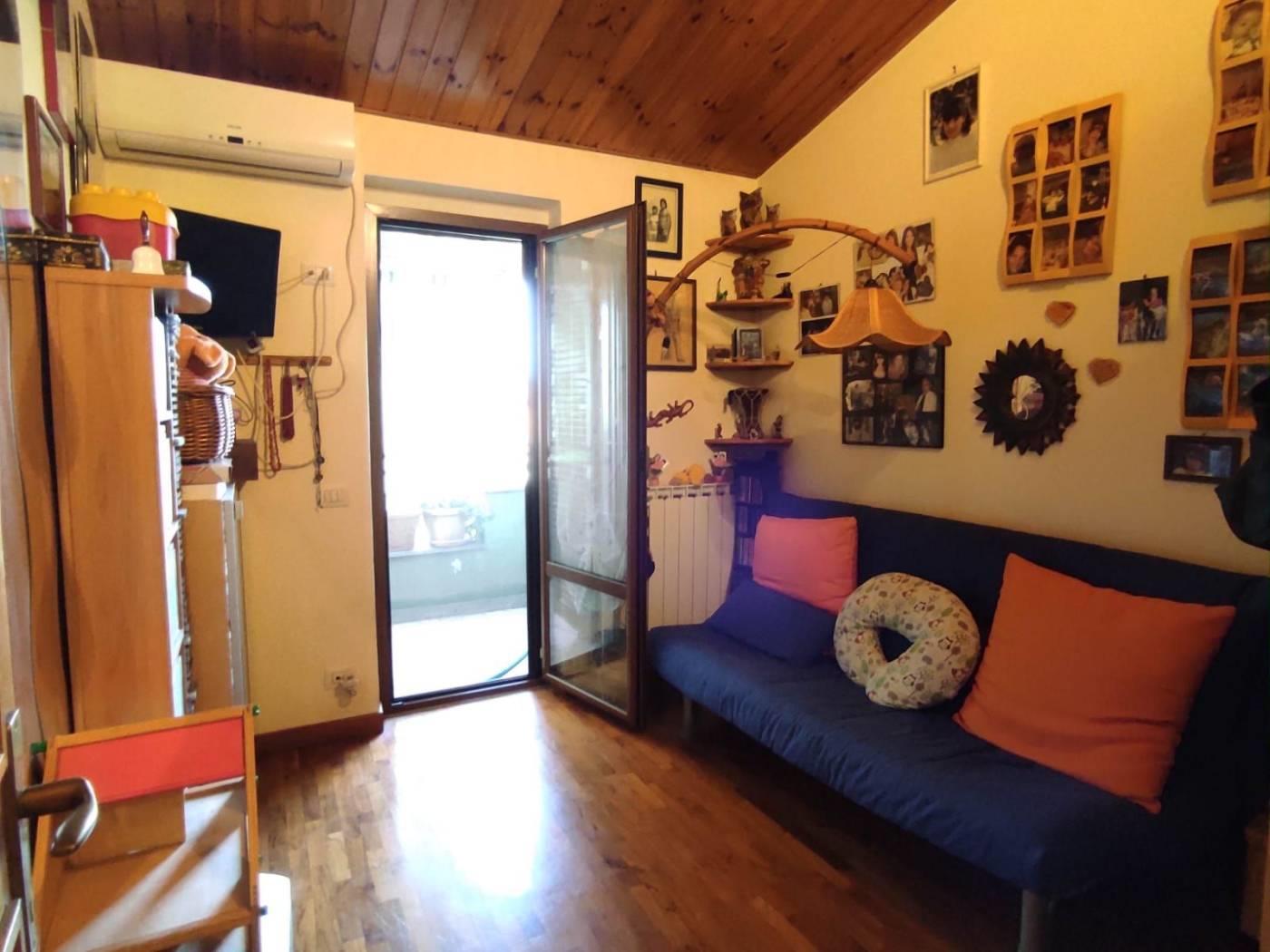 Salendo al piano superiore troviamo la zona notte composta da una camera da letto matrimoniale ed una seconda cameretta, entrambe con sfogo esterno su un balcone di 8 mq, ed infine il bagno servito da doccia.